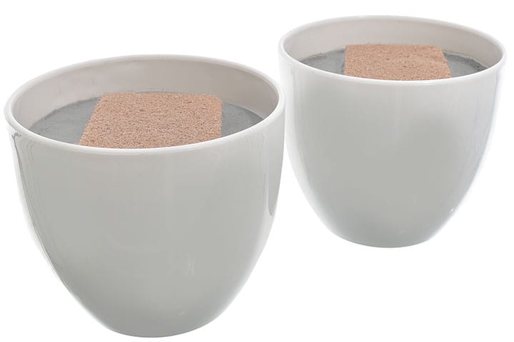 Doniczka wykonana z tworzywa sztucznego w eleganckim, białym kolorze obciążona betonem.