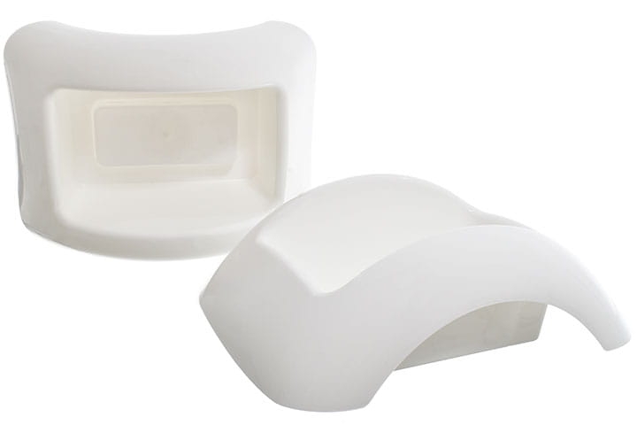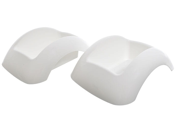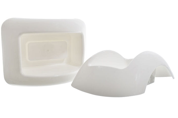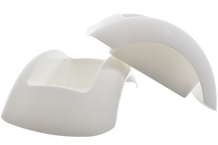 Doniczka wykonana z tworzywa sztucznego w eleganckim, białym kolorze.