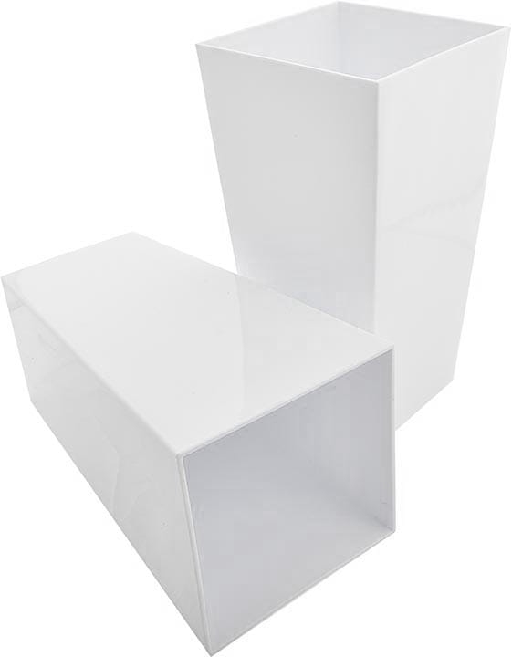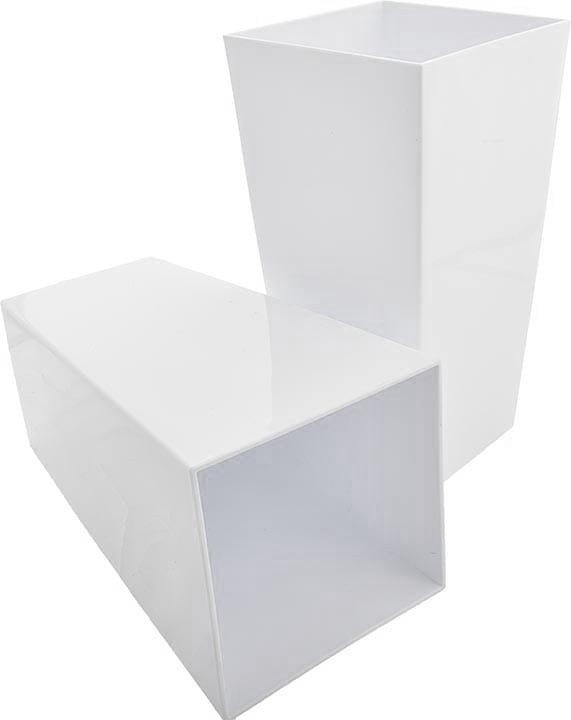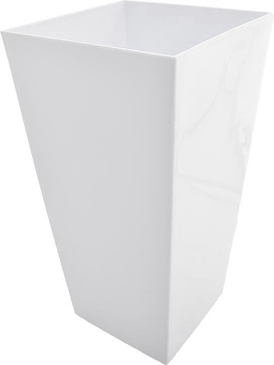 Doniczka wykonana z tworzywa sztucznego w eleganckim, białym kolorze.