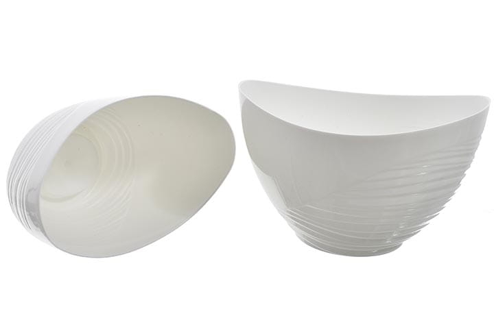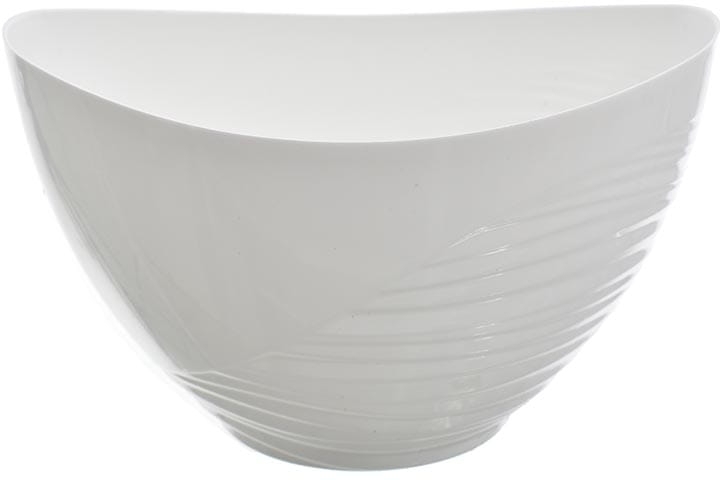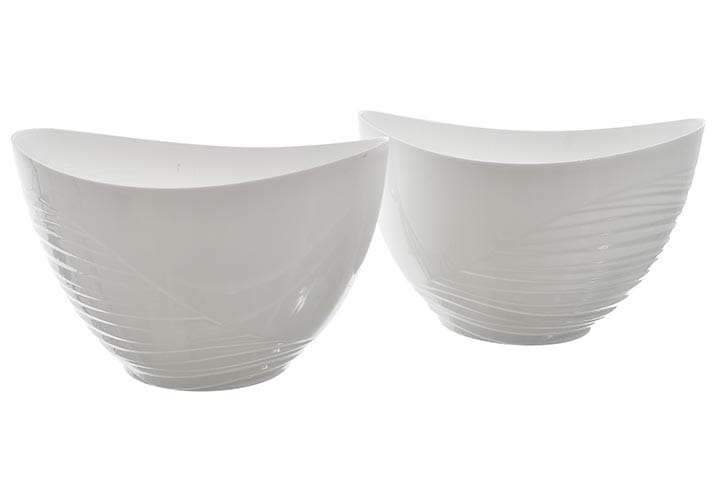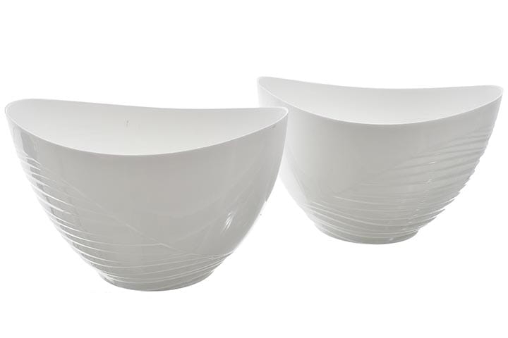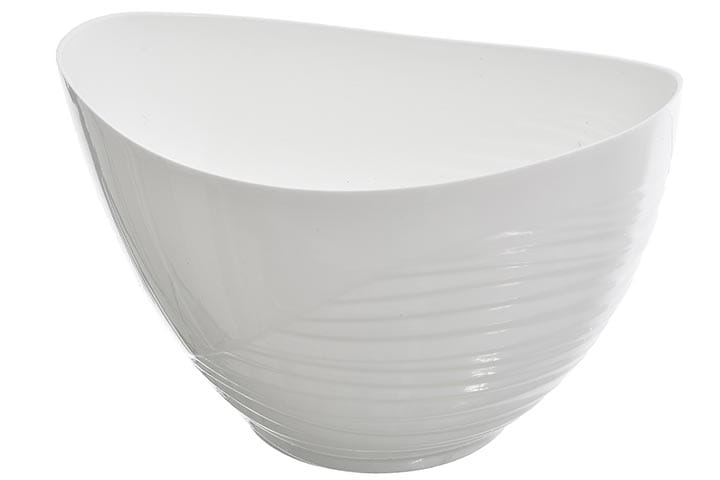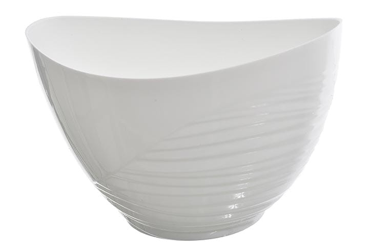 Doniczka wykonana z tworzywa sztucznego w eleganckim, białym kolorze.