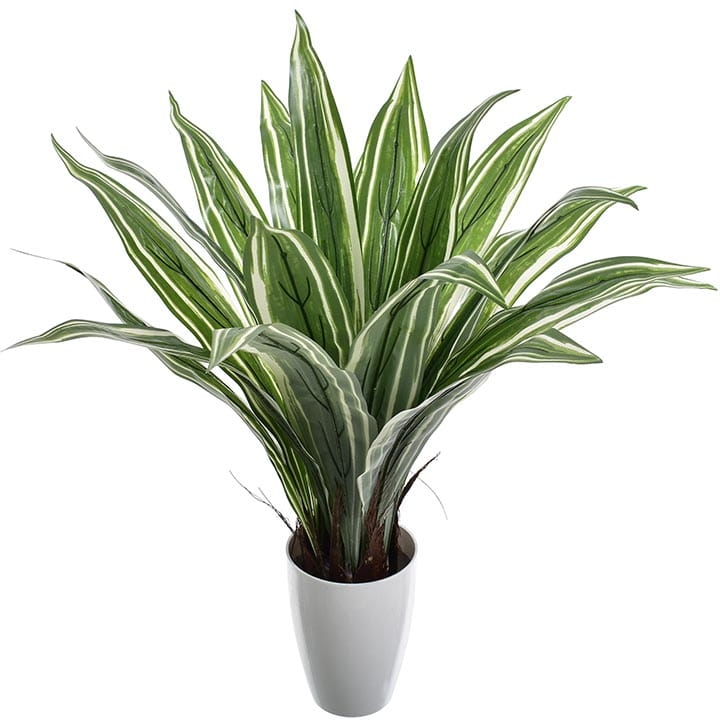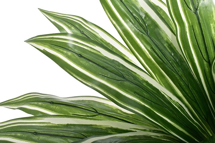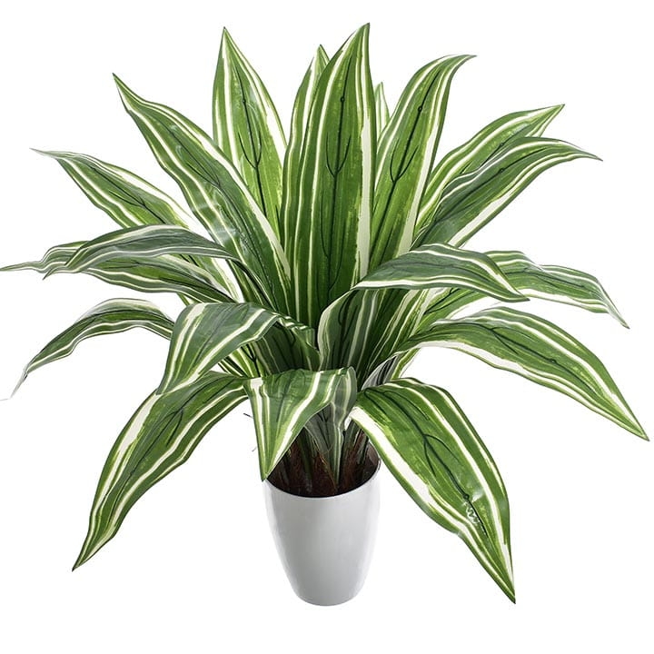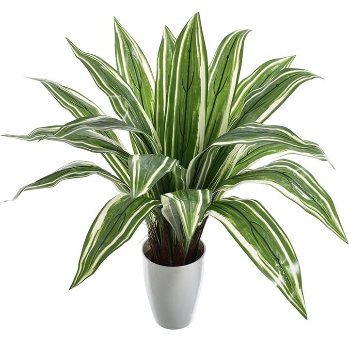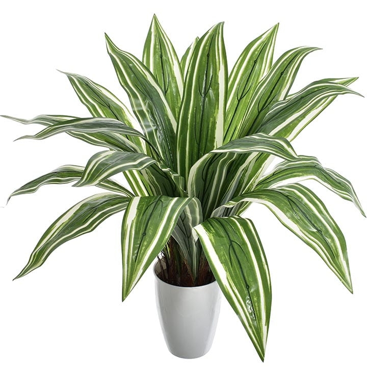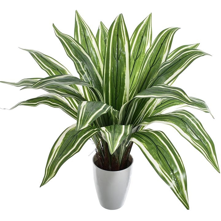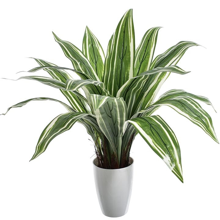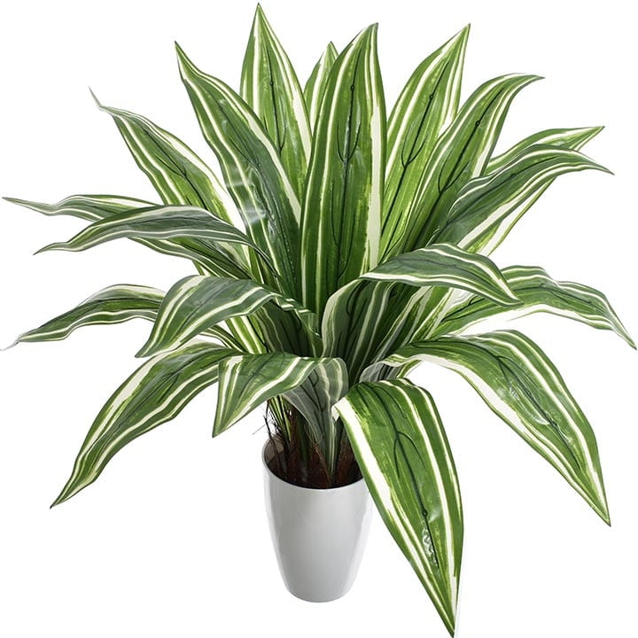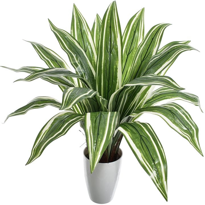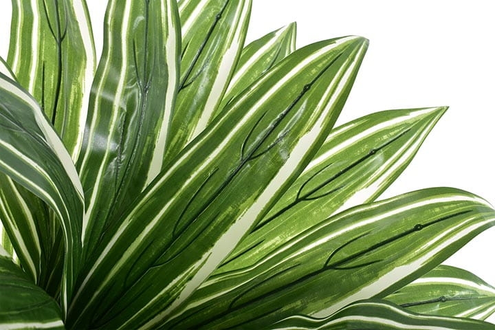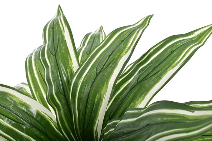 Delikatny połysk pięknych liści oraz ich niezwykłe zielono-białe przebarwienia skrupulatnie odwzorowują żywą dracenę.