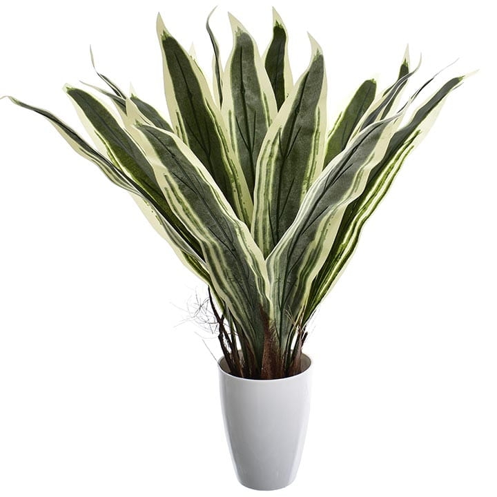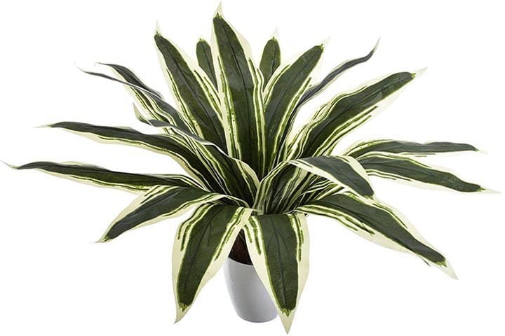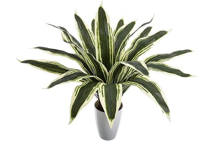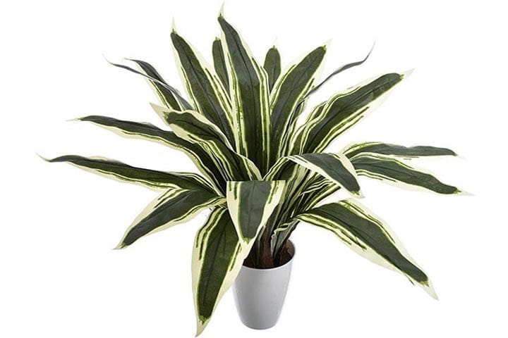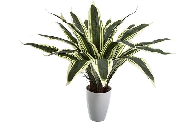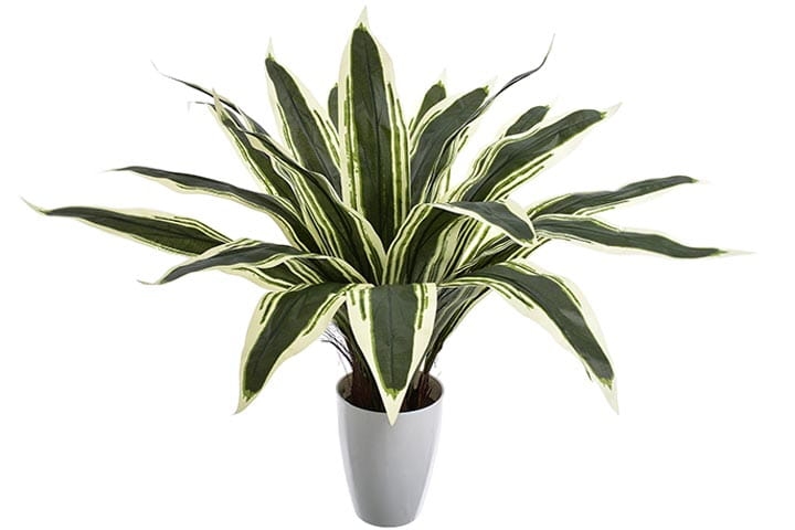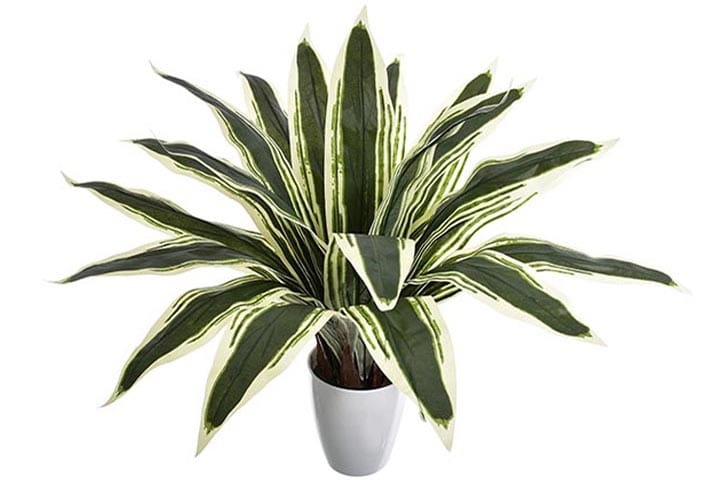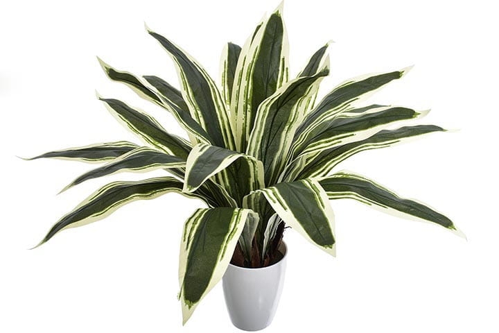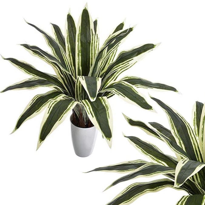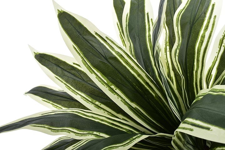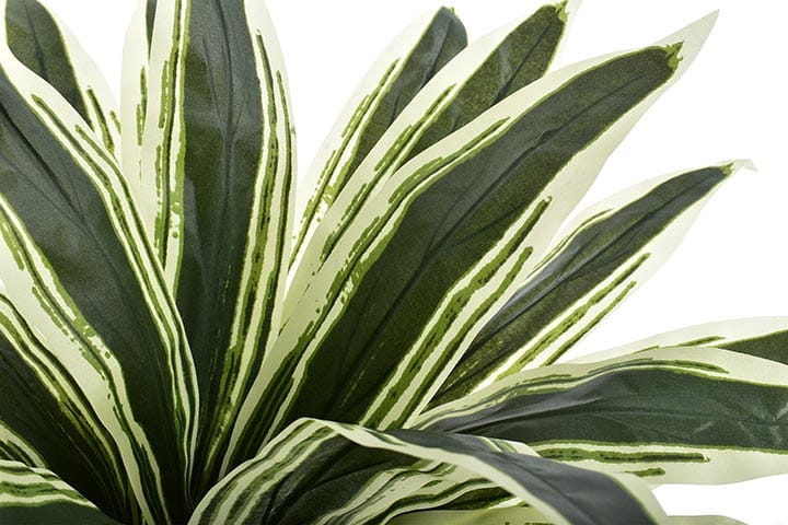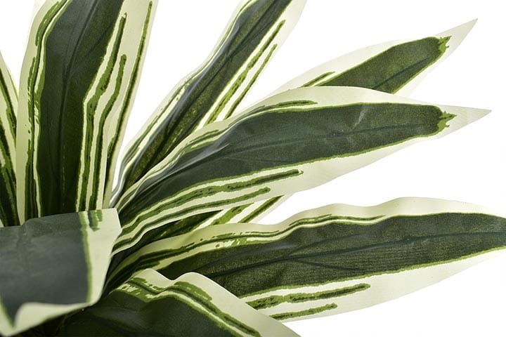 Delikatny połysk pięknych liści oraz ich niezwykłe zielono-białe przebarwienia skrupulatnie odwzorowują żywą dracenę.