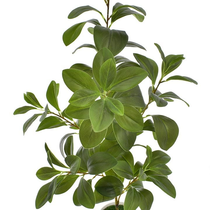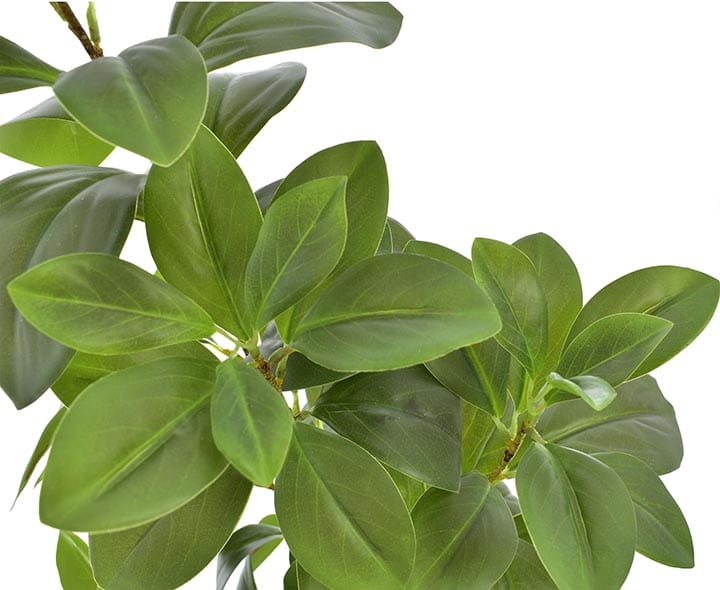 Gałązki i liście wykonane z tworzywa sztucznego do złudzenia przypominają naturalne drzewko.