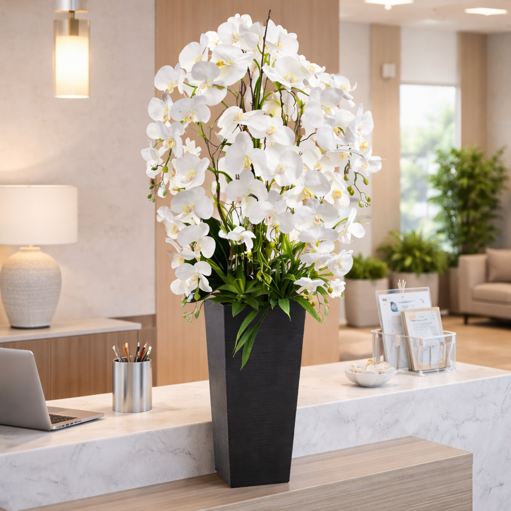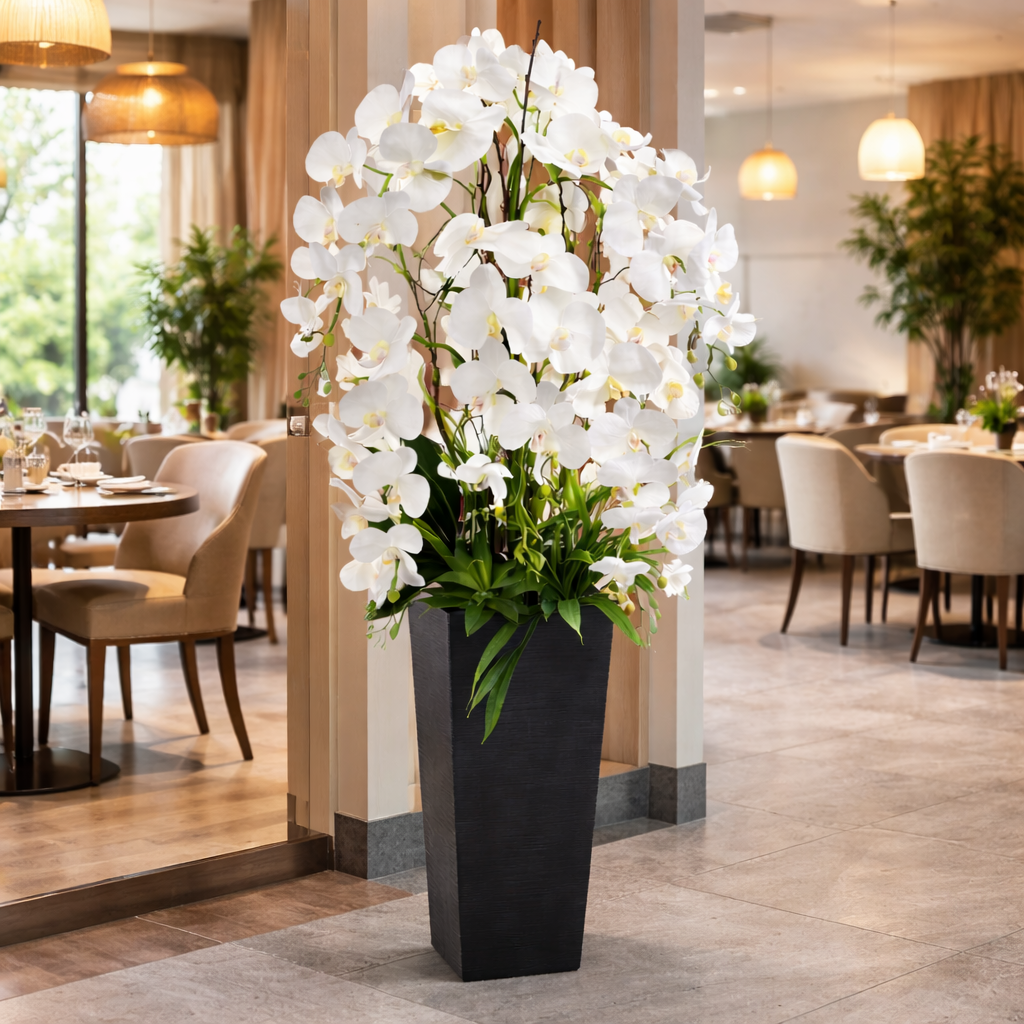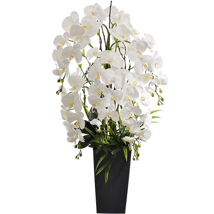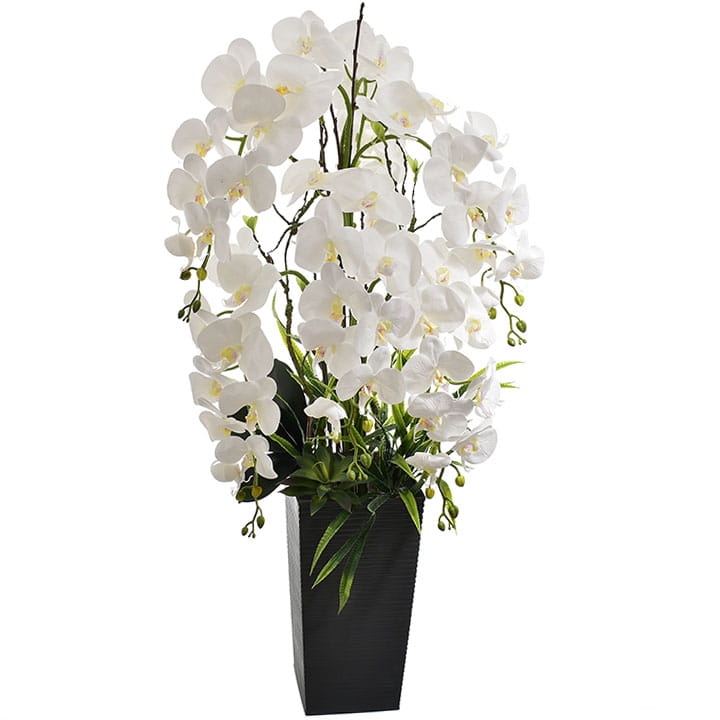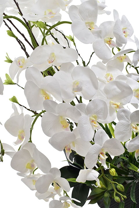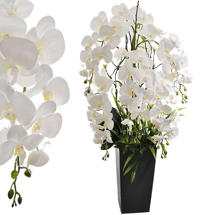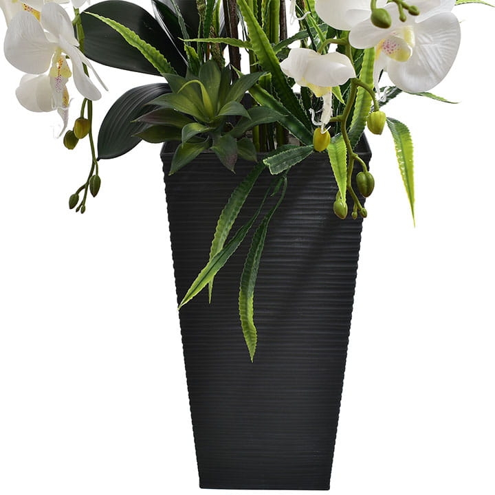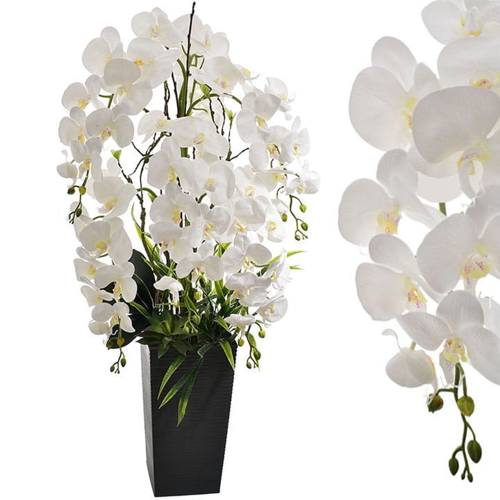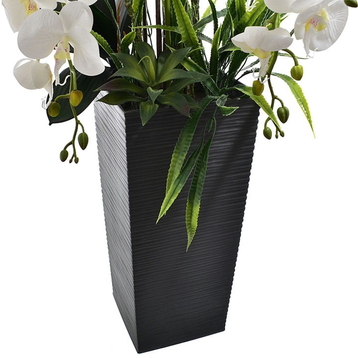 Przedstawiamy naszą oszałamiającą sztuczną orchideę XXL w grafitowej donicy.