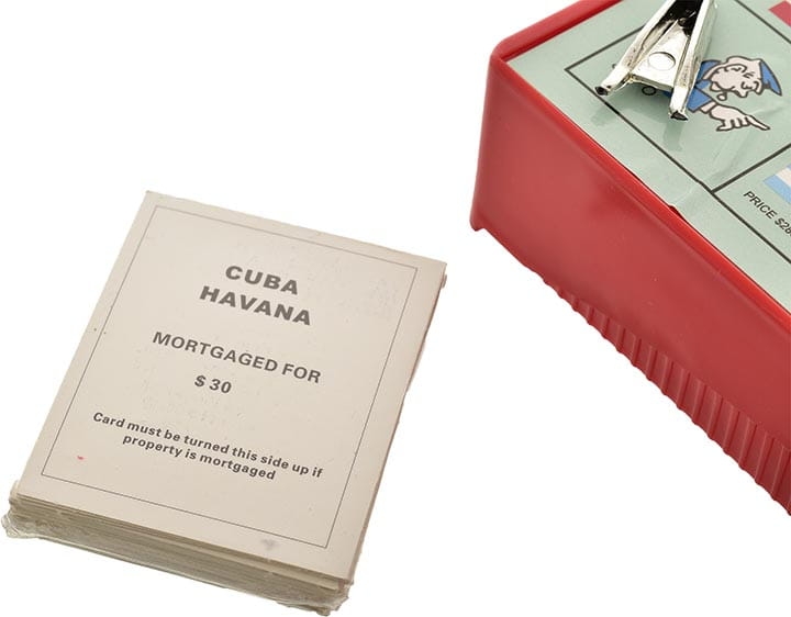 Pudełko z planszą, pieniądze, karty szans, karty wyceny nieruchomości, ruletkę, budynki, pionki oraz instrukcję.