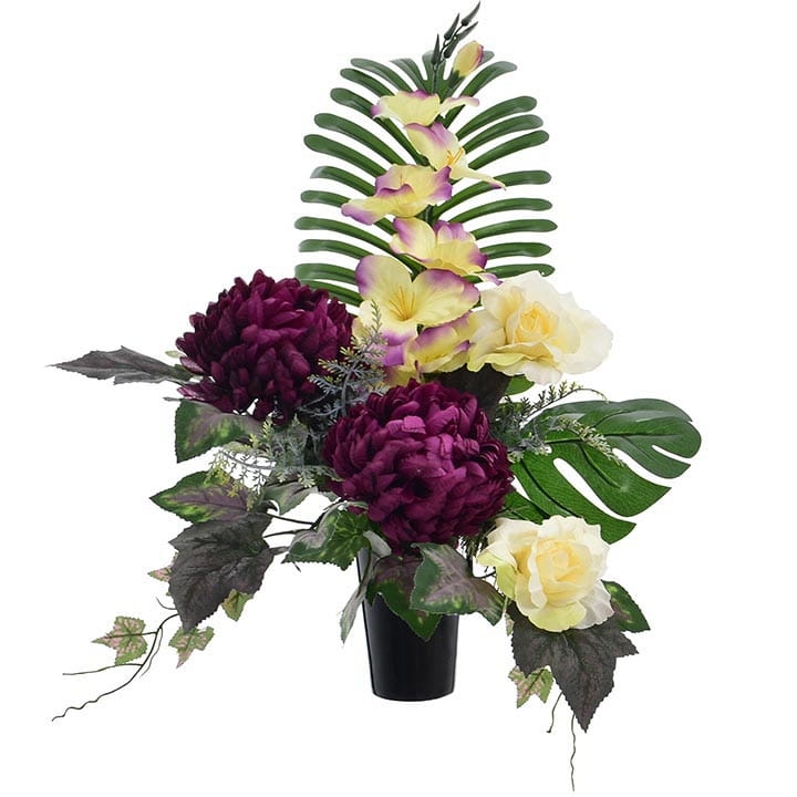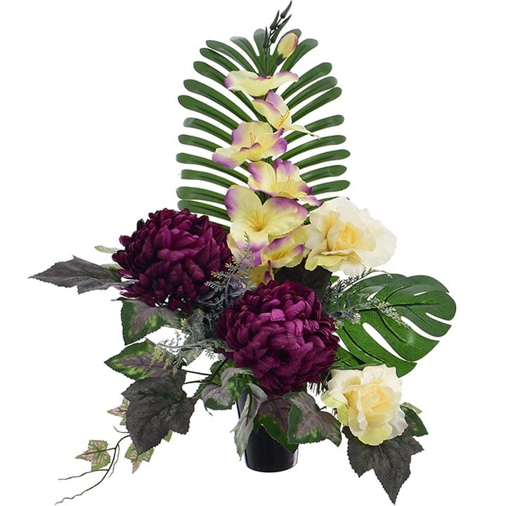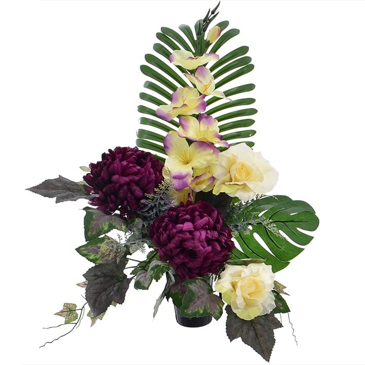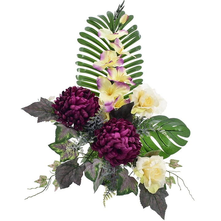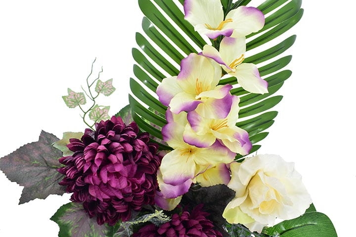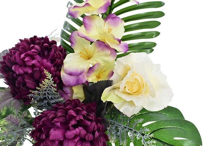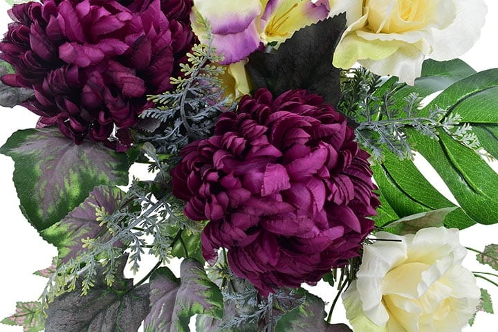 Różnorodne kwiaty umieszczone w kompozycji sprawią, że będzie ona ładnie prezentować się o każdej porze roku.