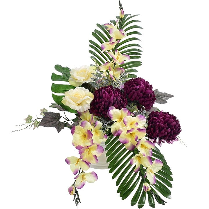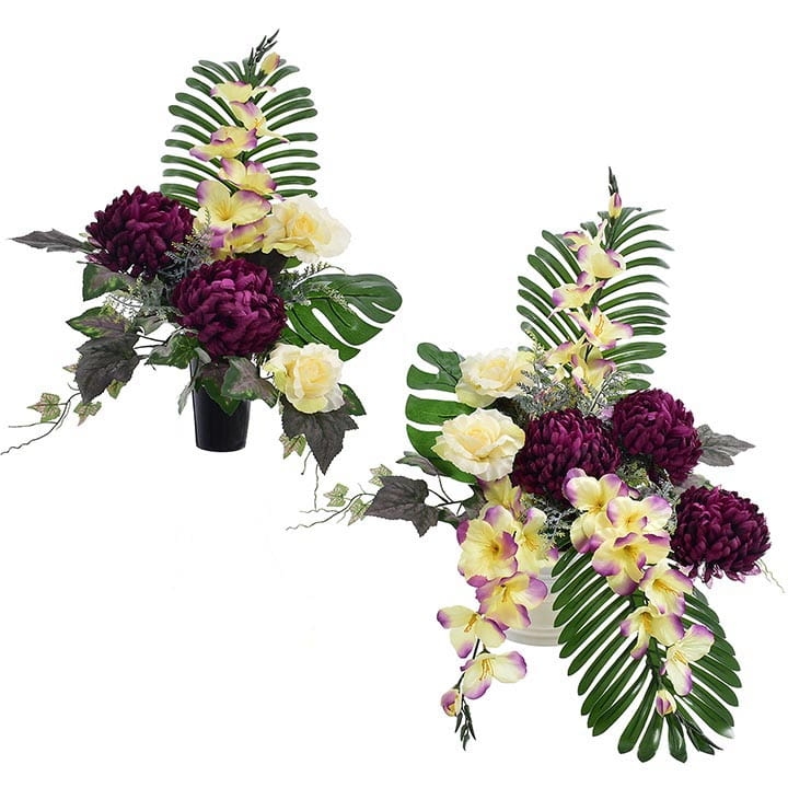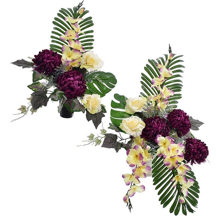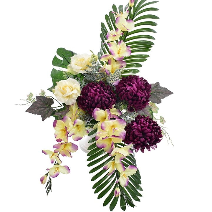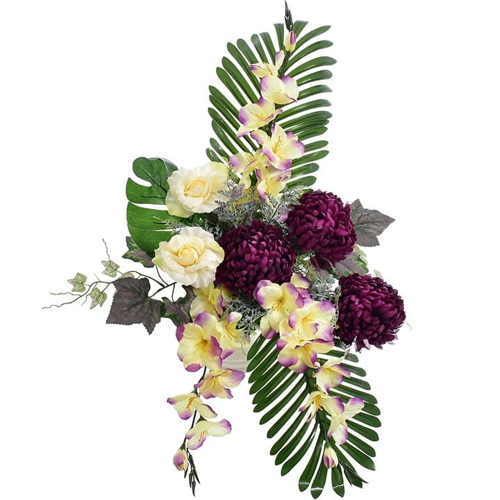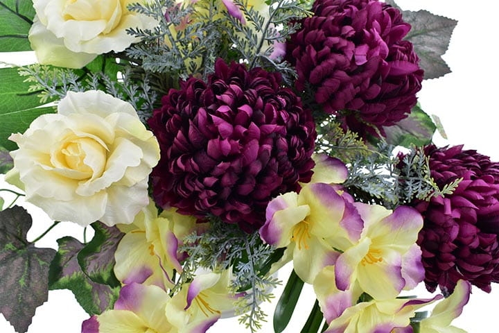 Całoroczna kompozycja wykonana ręcznie z dużą starannością z wysokiej jakości kwiatów, co sprawia, że wygląda bardzo naturalnie.