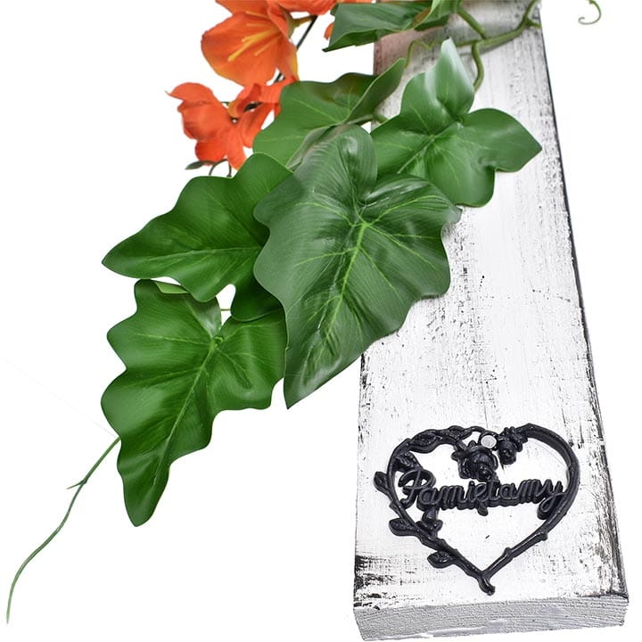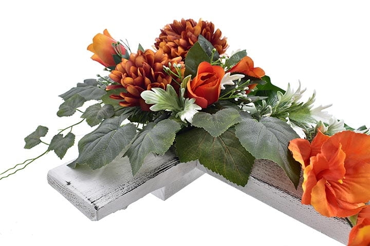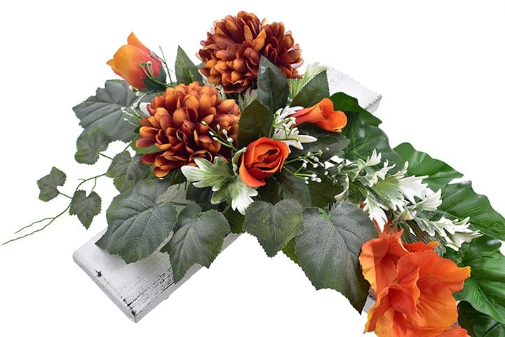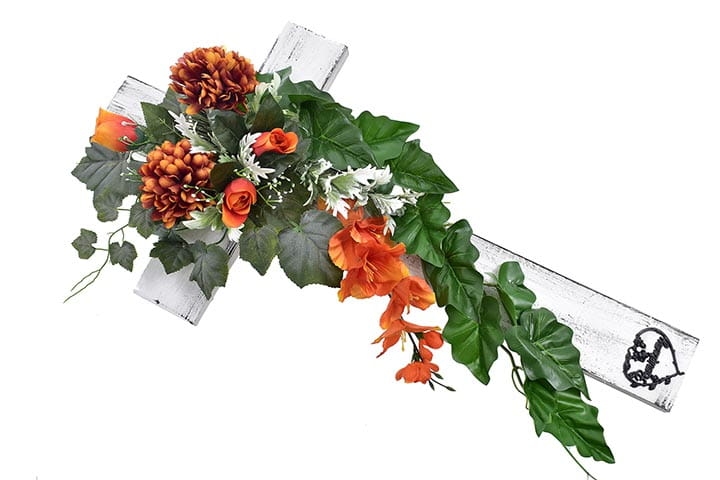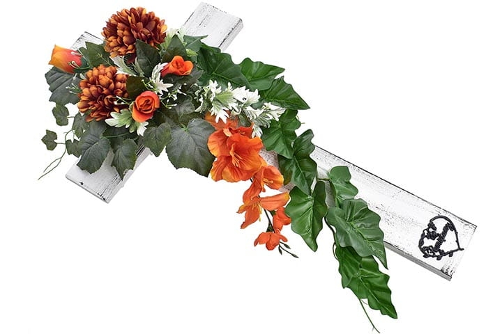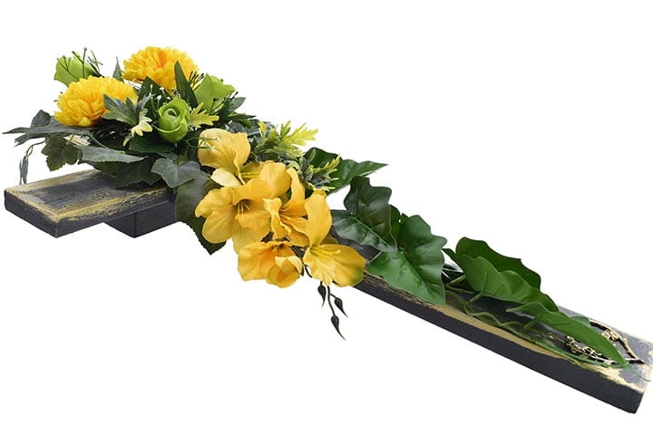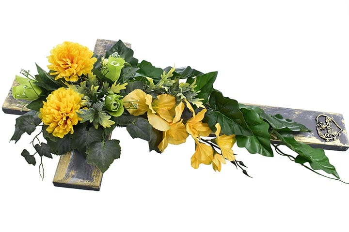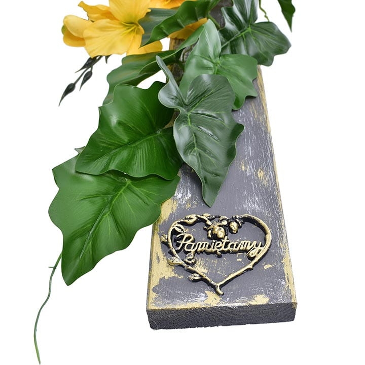 Kompozycja kwiatowa na drewnianym krzyżu