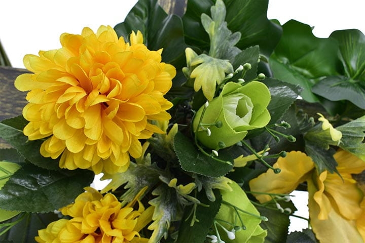 Uczcij pamięć swoich bliskich tą wspaniałą dekoracją, wykonaną z różnorodnych kwiatów, które będą promieniować pięknem przez długi czas.