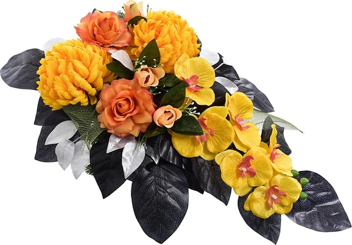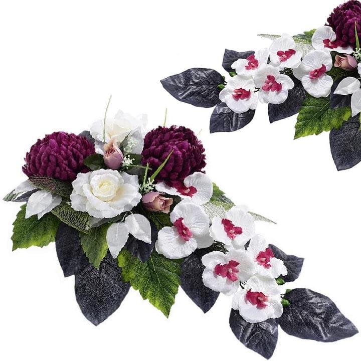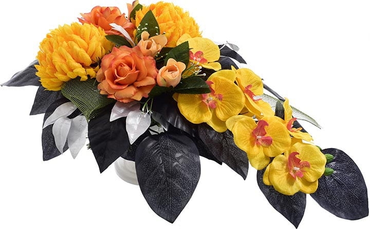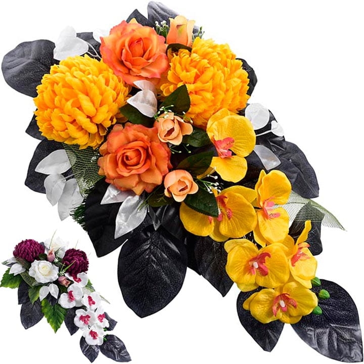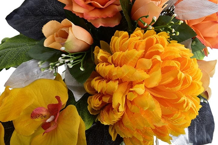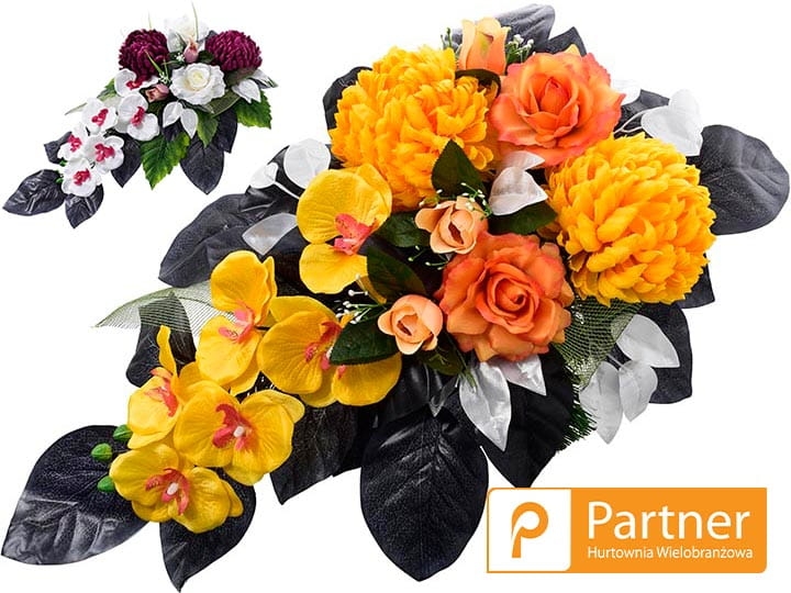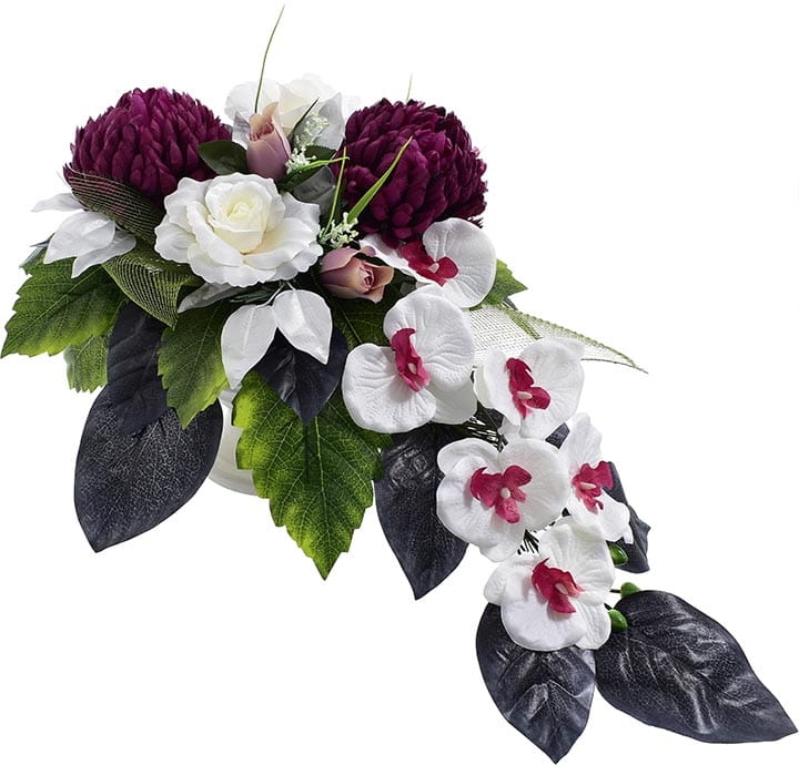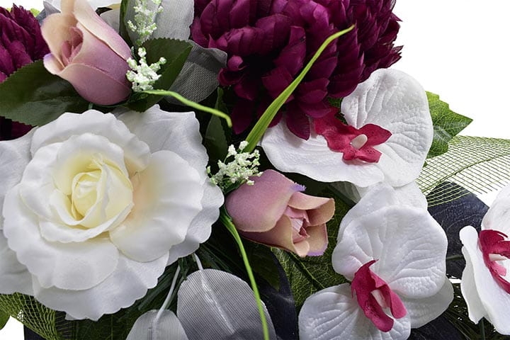 Całoroczna kompozycja wykonana ręcznie z dużą starannością z wysokiej jakości kwiatów, co sprawia, że wygląda bardzo naturalnie.