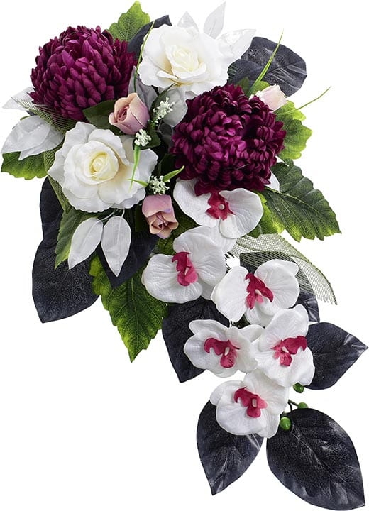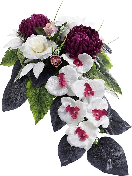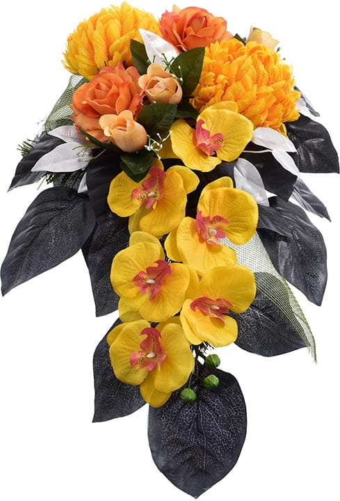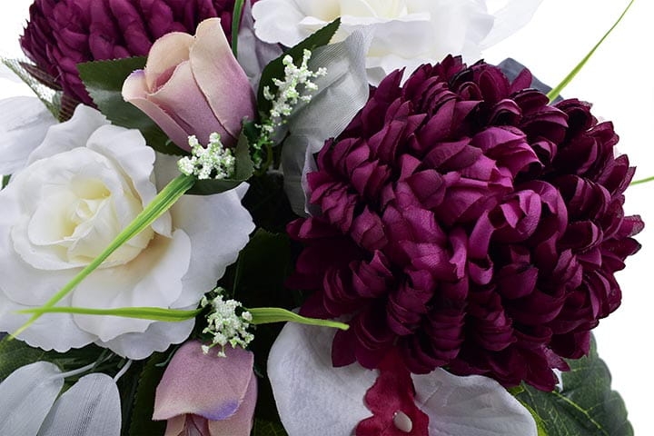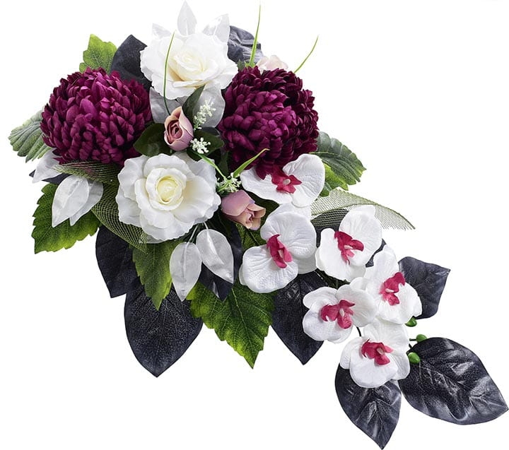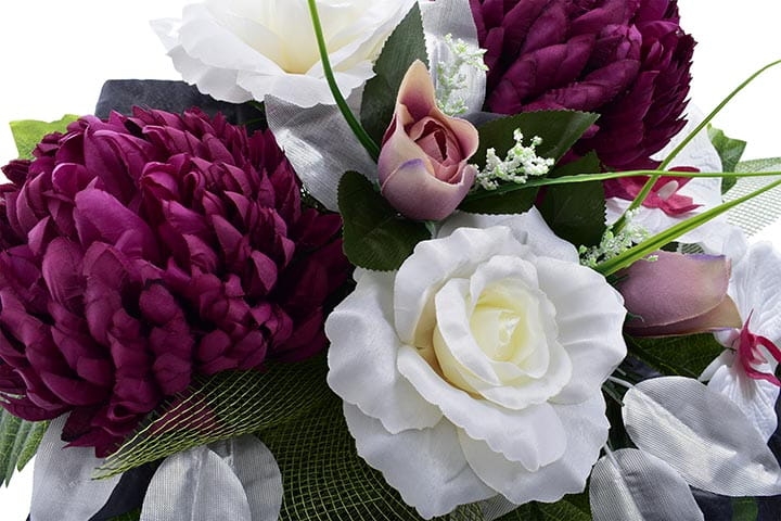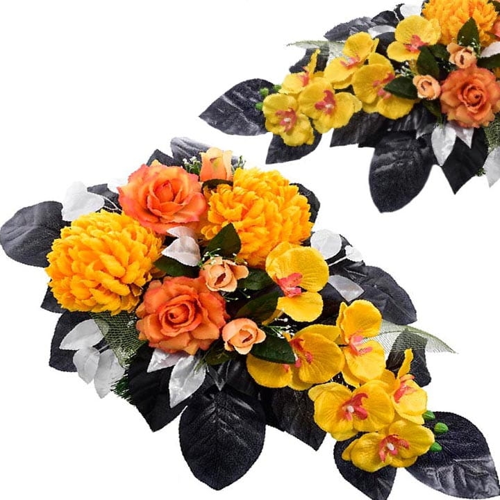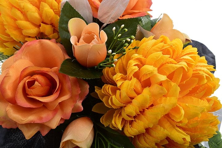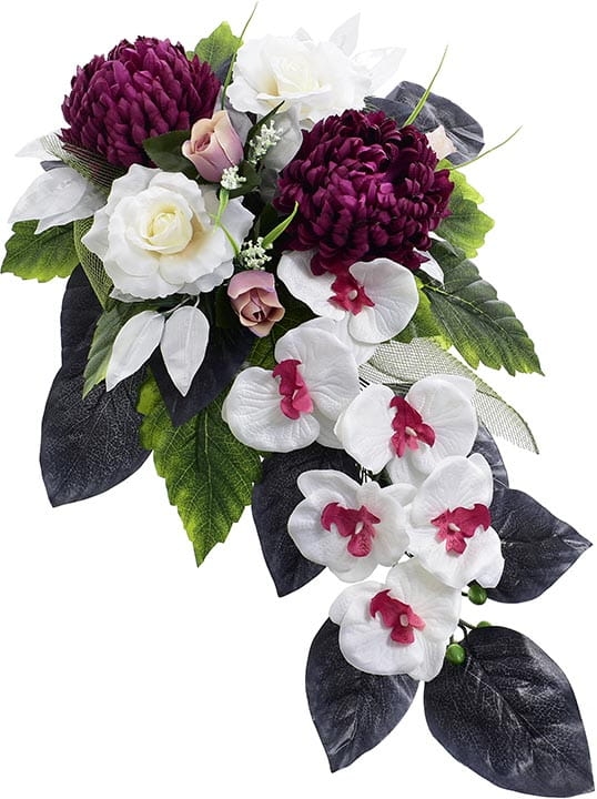 Całoroczna kompozycja wykonana ręcznie z dużą starannością z wysokiej jakości kwiatów, co sprawia, że wygląda bardzo naturalnie.