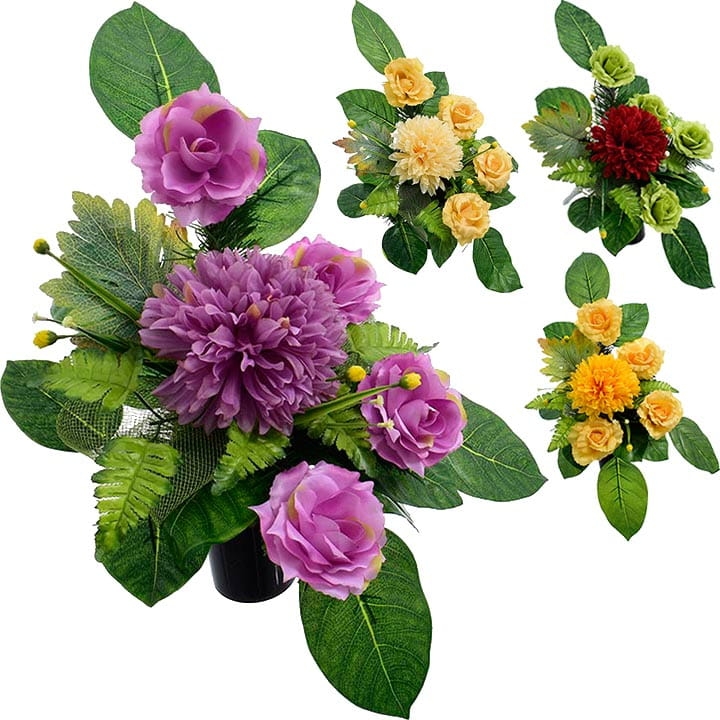 Całoroczna dekoracja nagrobna, wykonana ręcznie z dużą starannością z wysokiej jakości kwiatów co sprawia, że wygląda bardzo naturalnie.