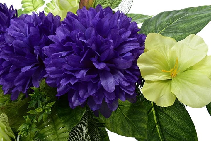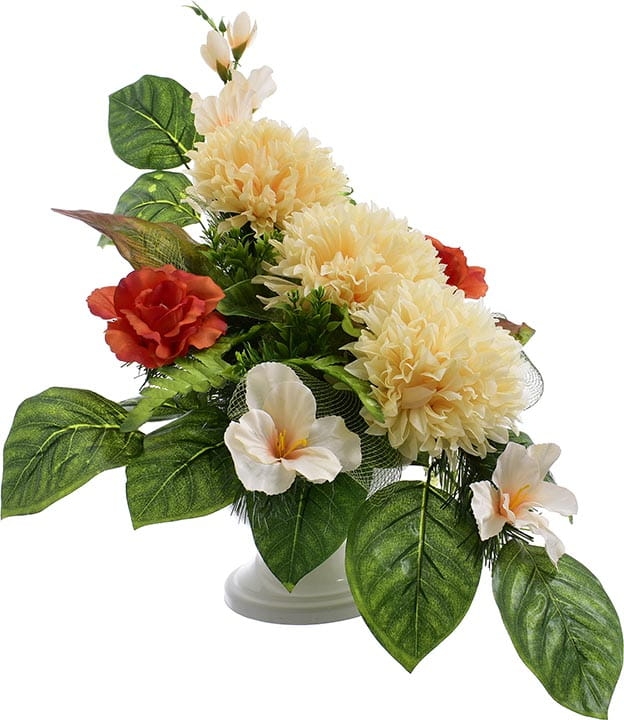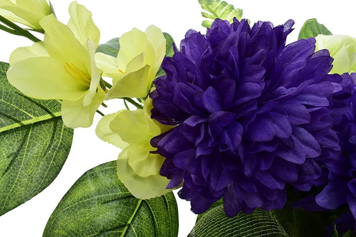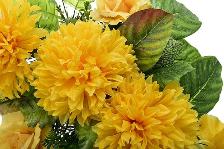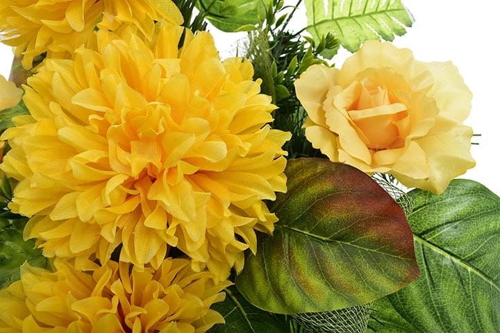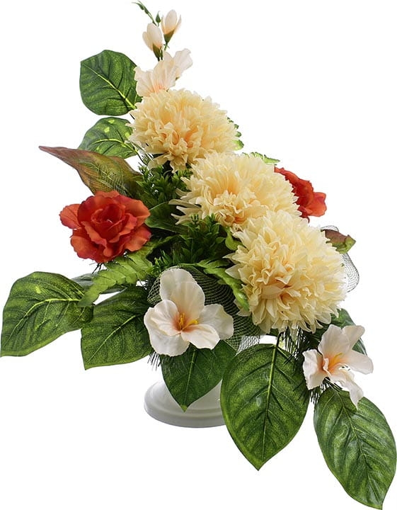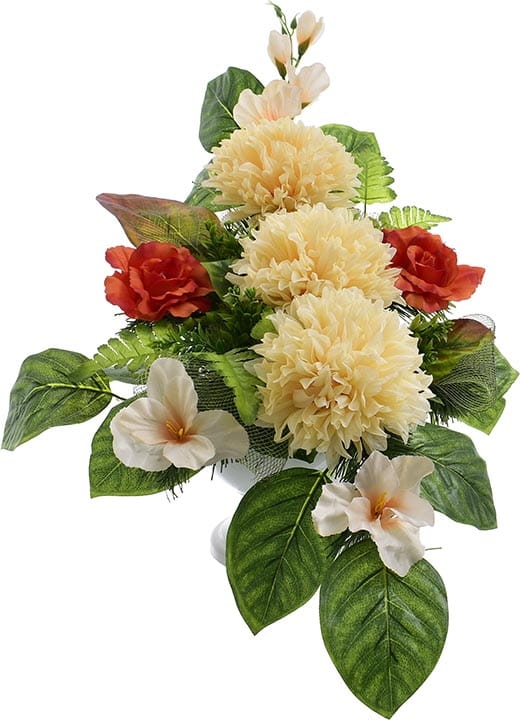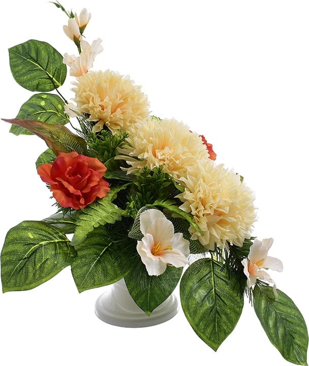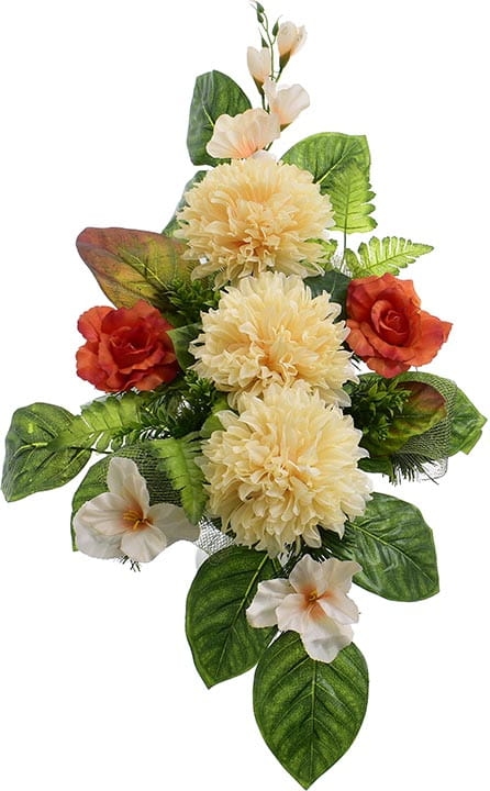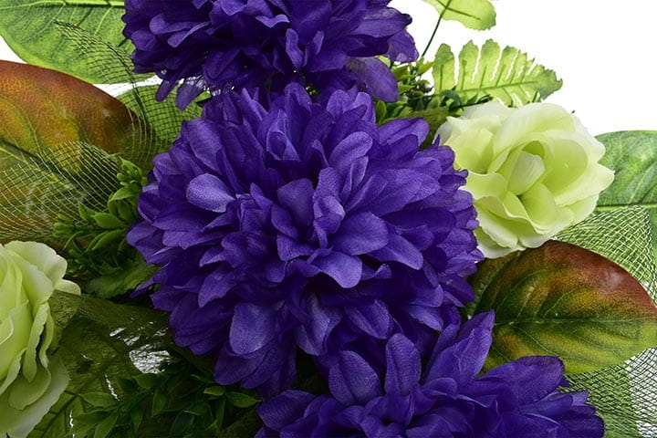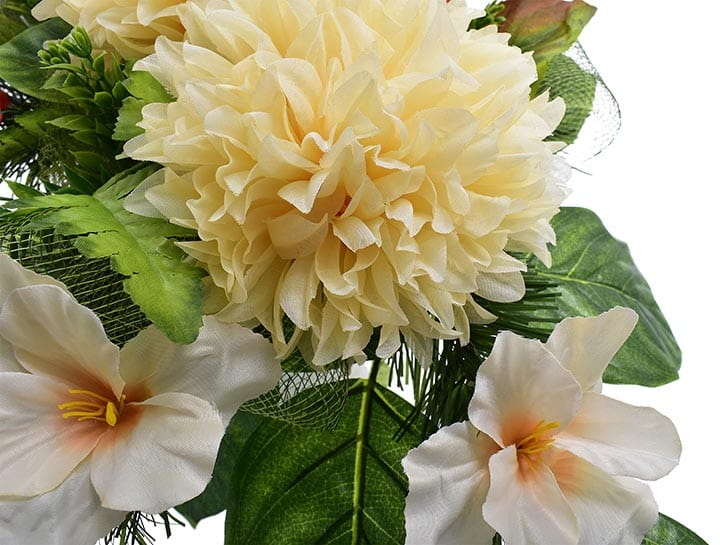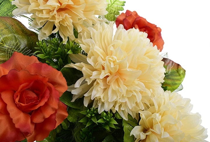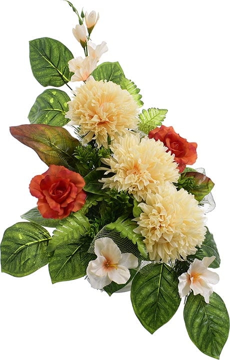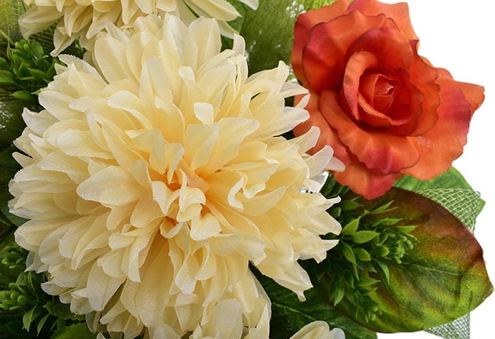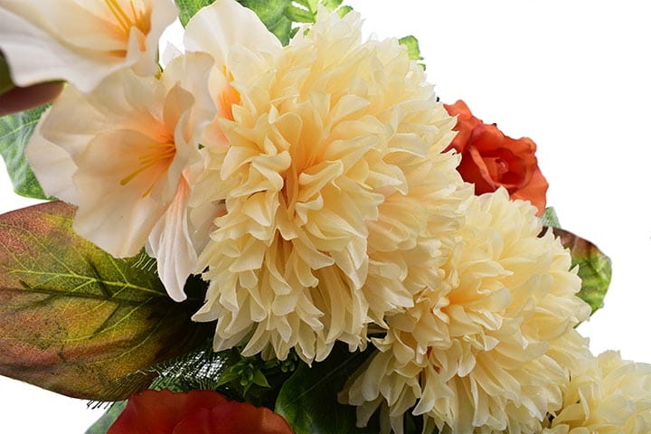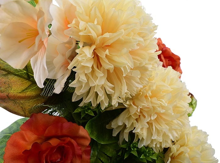 Całoroczna kompozycja wykonana ręcznie z dużą starannością z wysokiej jakości kwiatów co sprawia, że wygląda bardzo naturalnie.