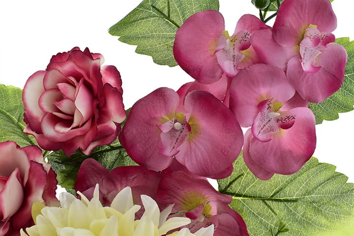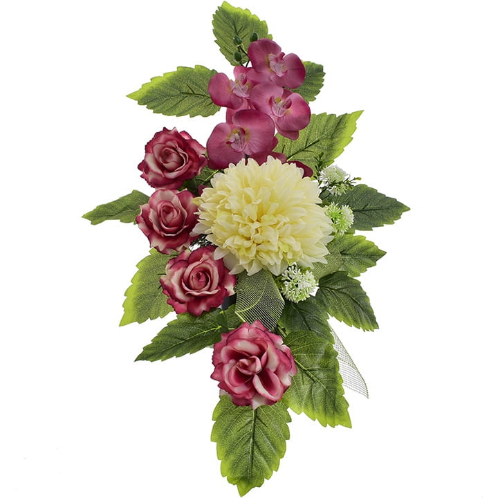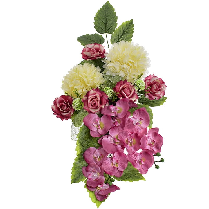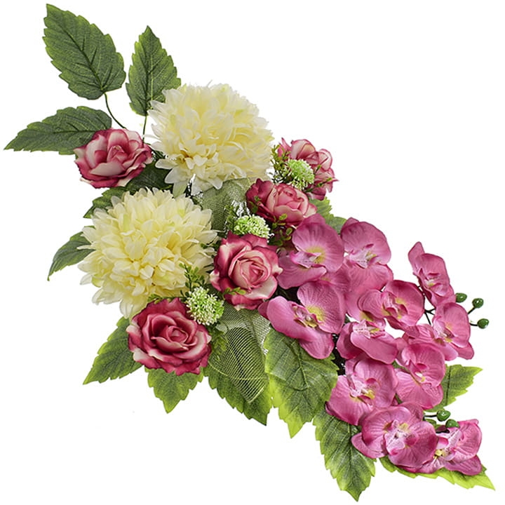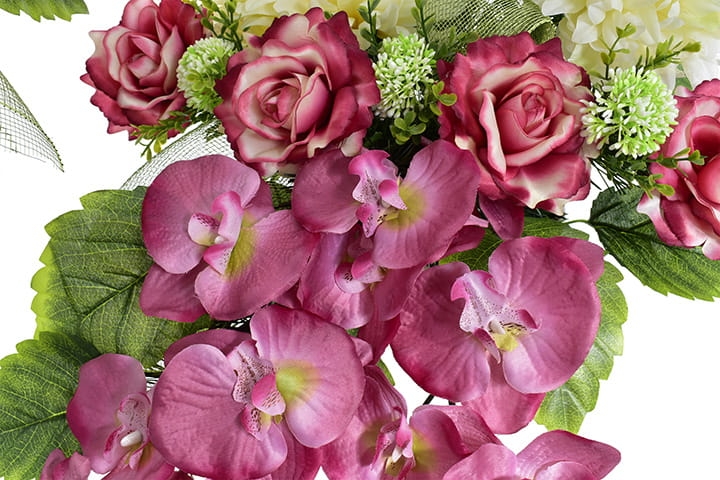 Niezwykle żywe kolory orchidei, chryzantem i eleganckich róż dodatkowo wzbogacone zielenią stworzą niezapomniany efekt wizualny na grobie Twojej ukochanej osoby.