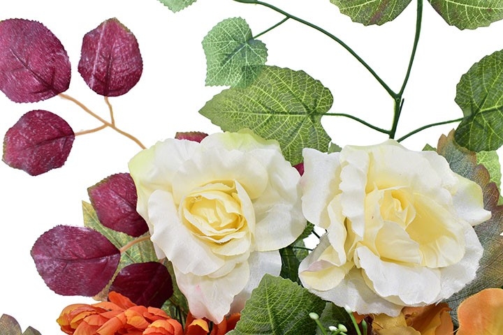 Dzięki realistycznemu wyglądowi kwiatów kompozycja prezentuje się bardzo naturalnie i zachowuje swój piękny wygląd przez długi czas.