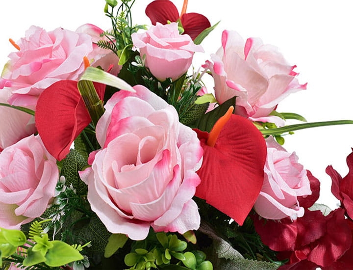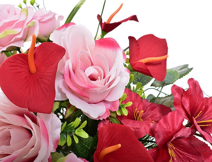 Uczcij pamięć swoich bliskich tą wspaniałą dekoracją, wykonaną z różnorodnych kwiatów, które będą promieniować pięknem przez długi czas.
