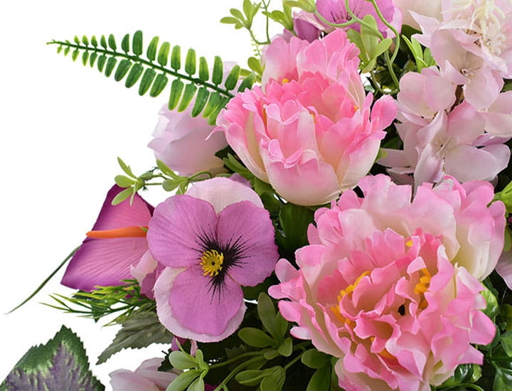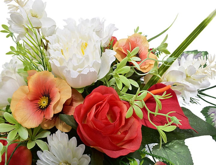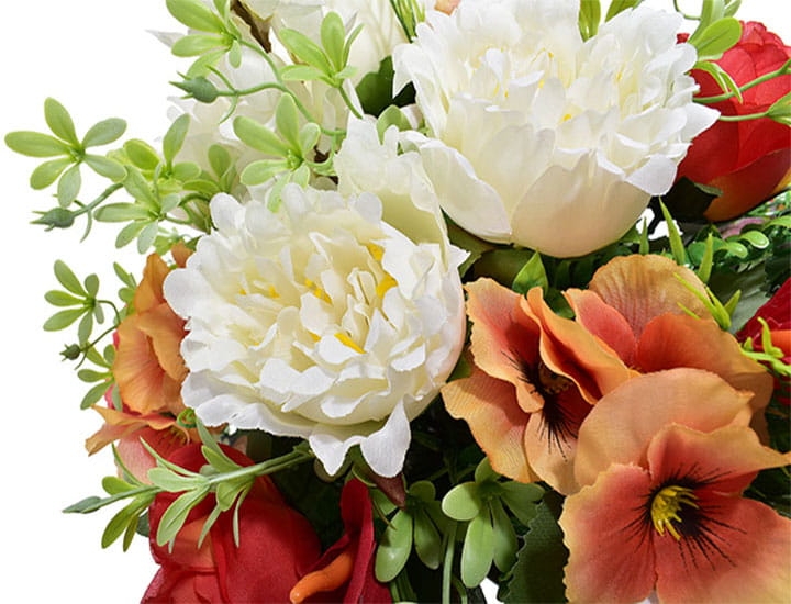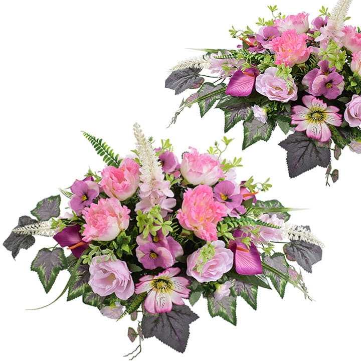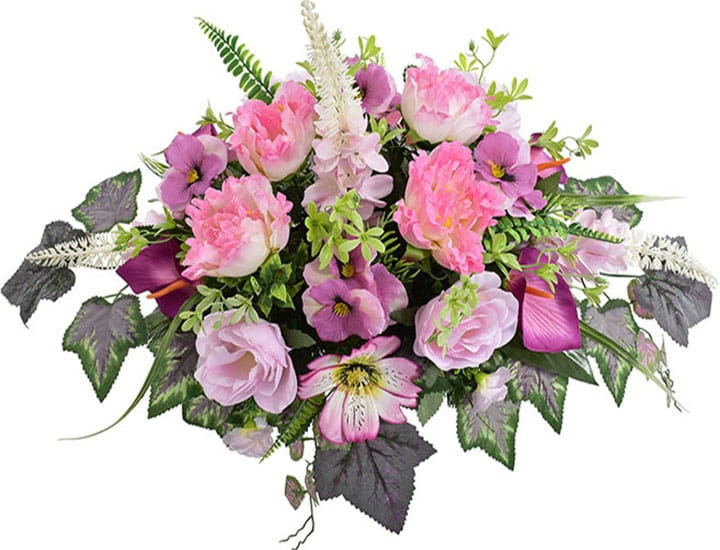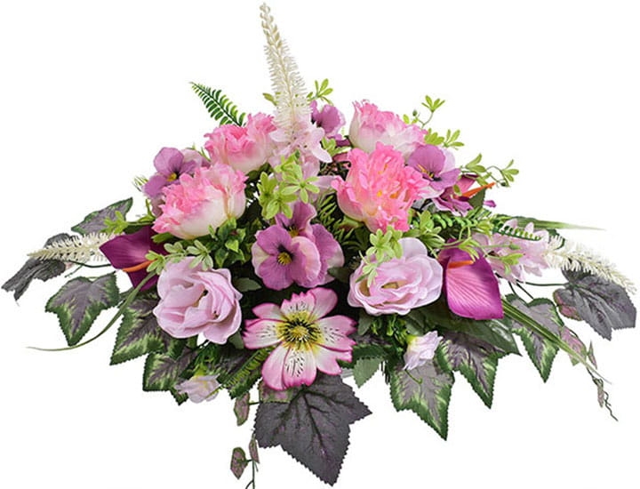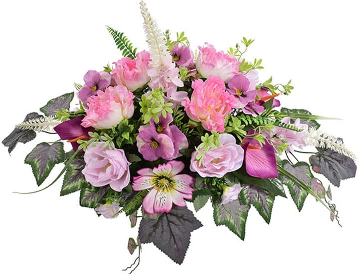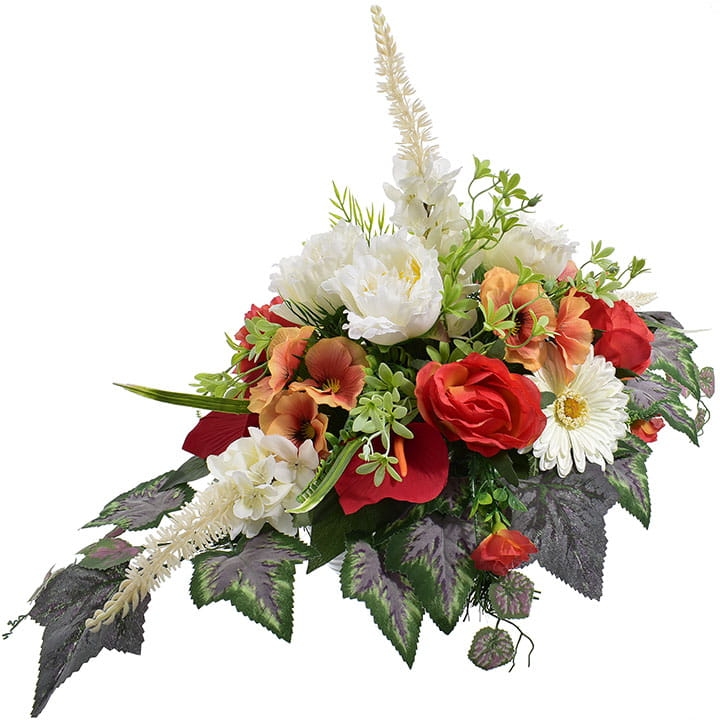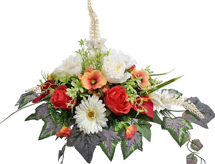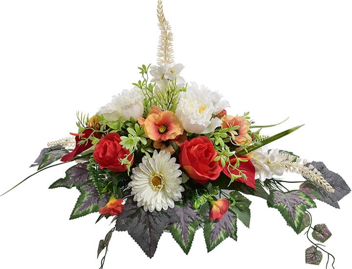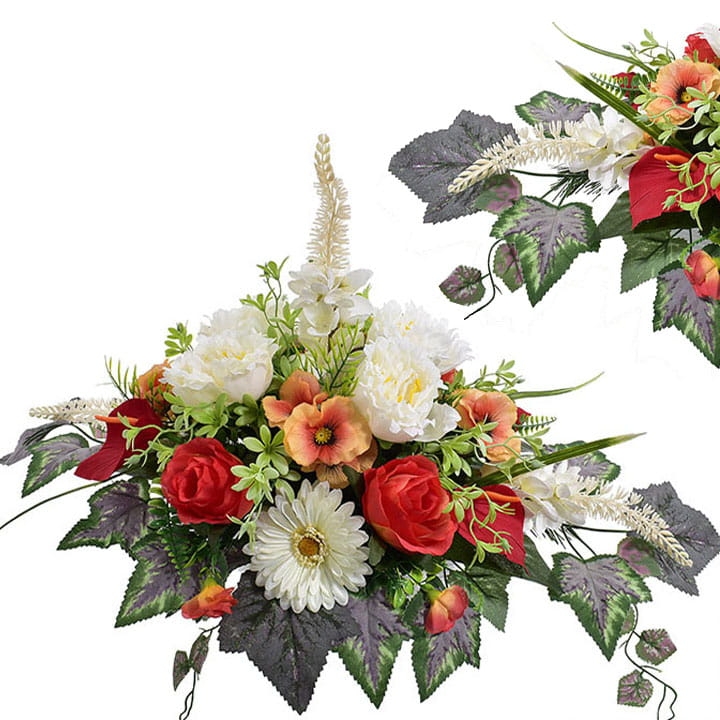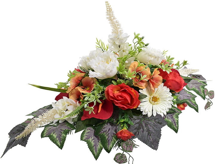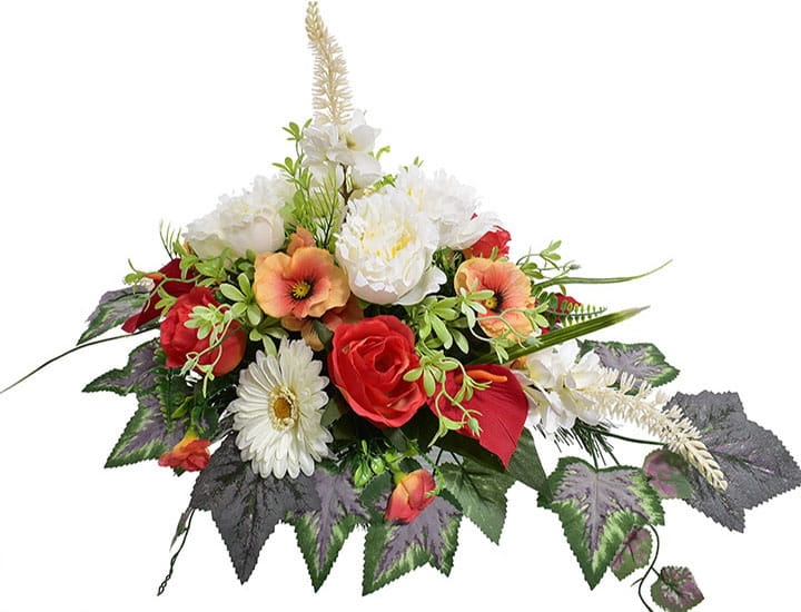 Przedstawiamy przepiękną kompozycję nagrobną wykonaną z wysokiej jakości sztucznych kwiatów.