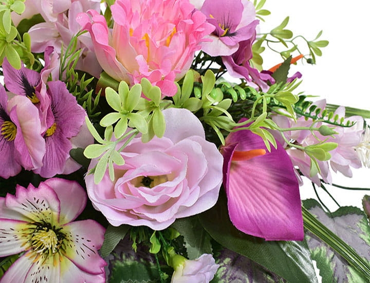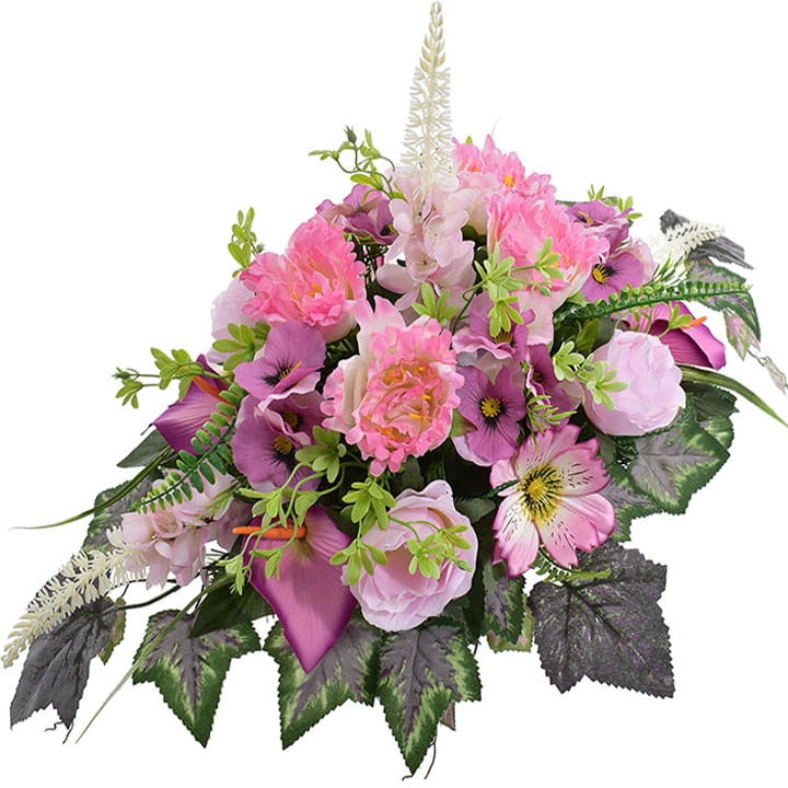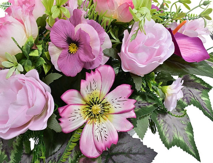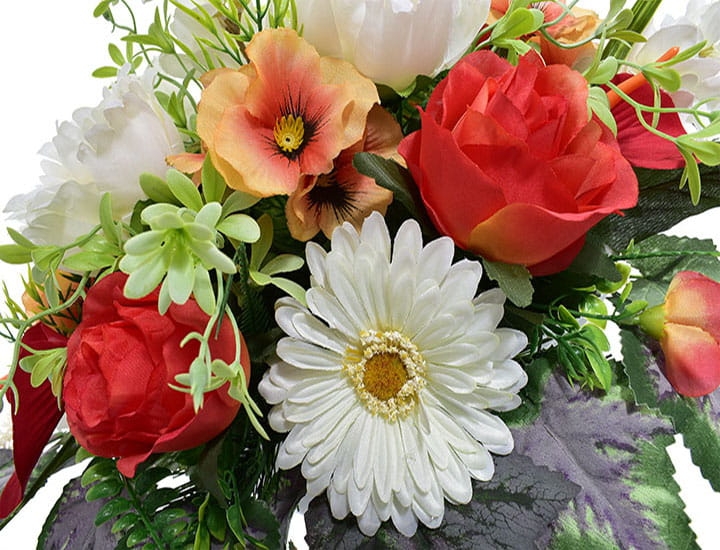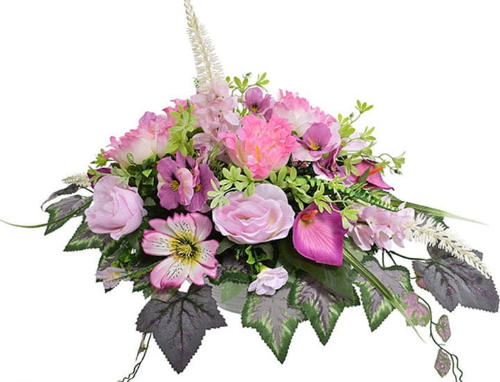 Piękna kompozycja ze sztucznych kwiatów stroik na cmentarz w donicy