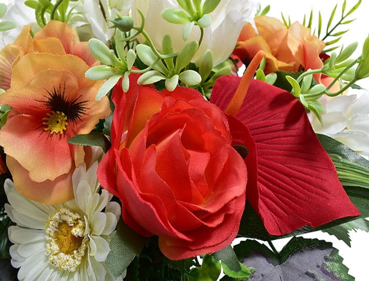 Uczcij pamięć swoich bliskich tą wspaniałą dekoracją, wykonaną z różnorodnych kwiatów, które będą promieniować pięknem przez długi czas.