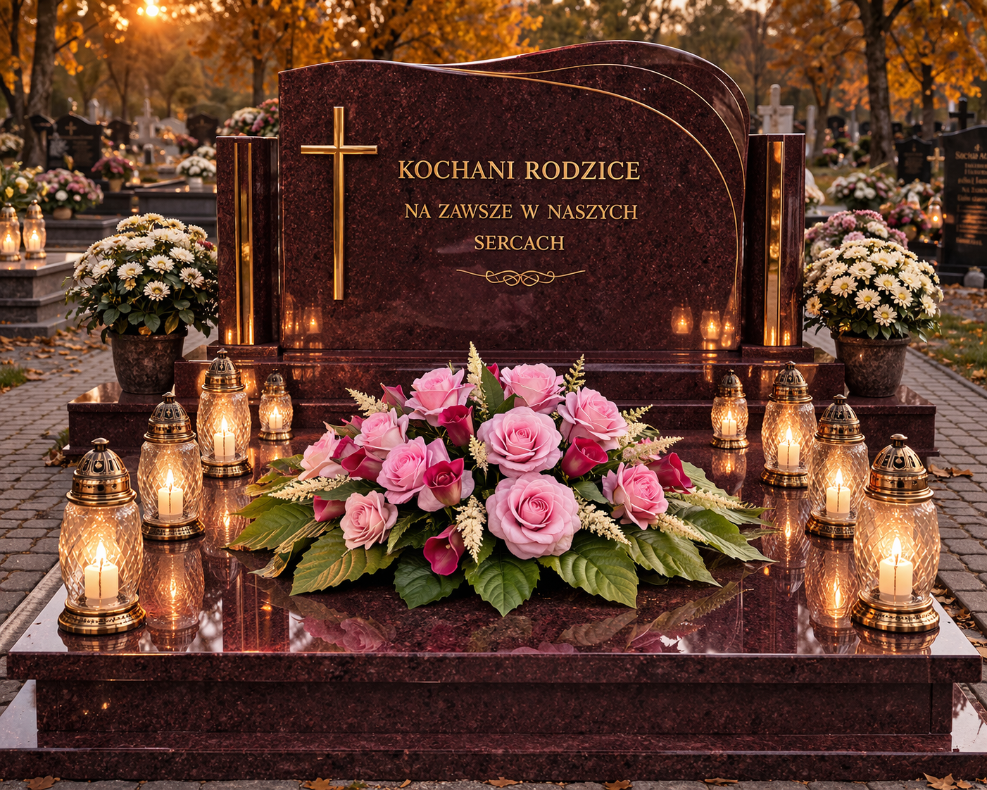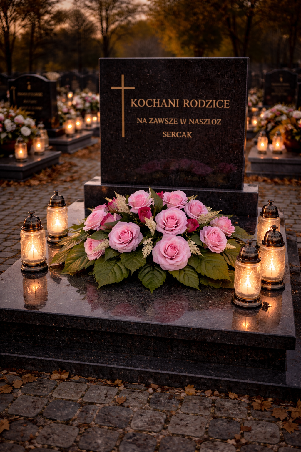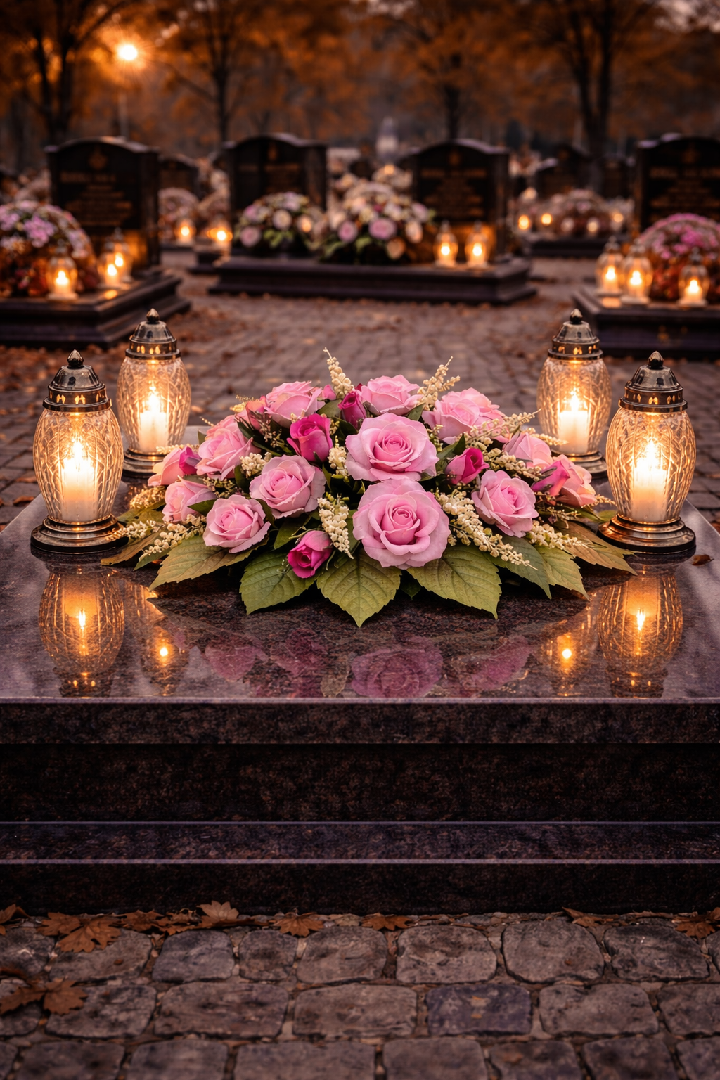 Ta elegancka dekoracja to wyraz szacunku i pamięci, która na długo zachowa swój urok. Idealna zarówno na Wszystkich Świętych, jak i na inne ważne okazje, kiedy chcesz upiększyć miejsce spoczynku swoich bliskich.