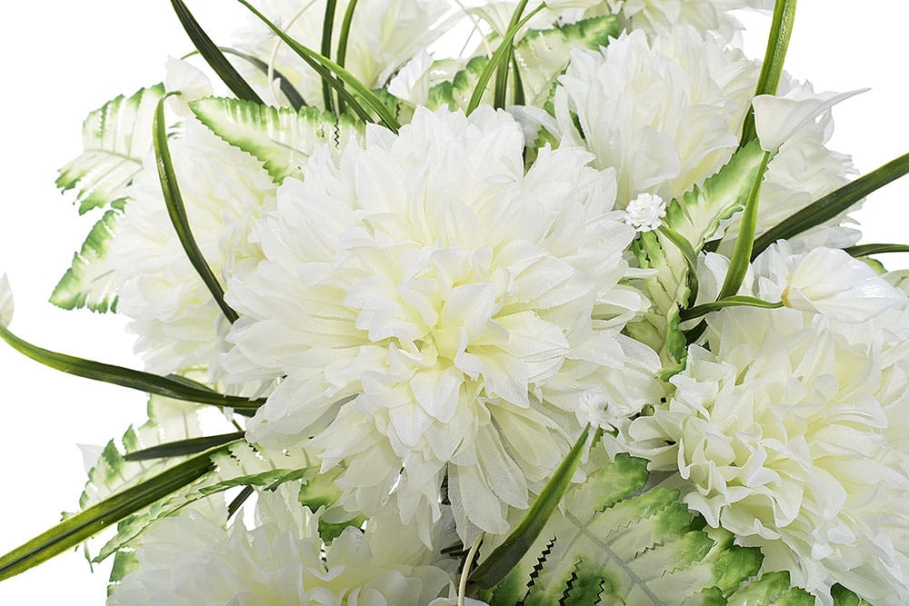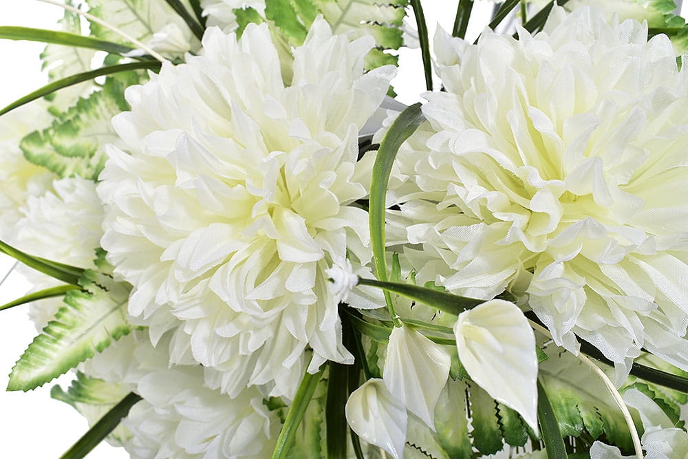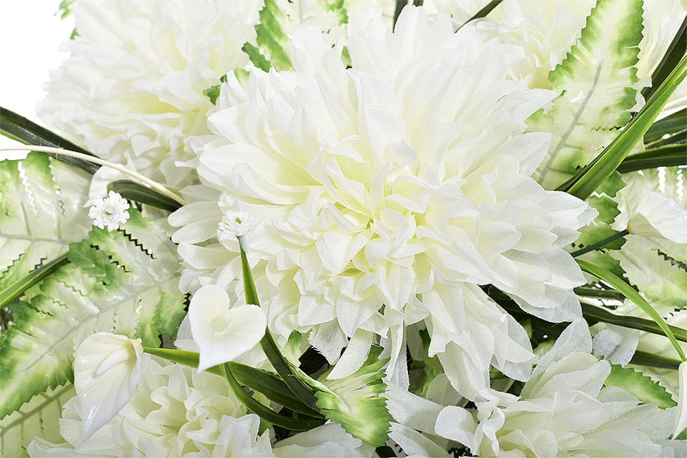 Przedstawiamy przepiękną kompozycję nagrobną wykonaną z wysokiej jakości sztucznych kwiatów.