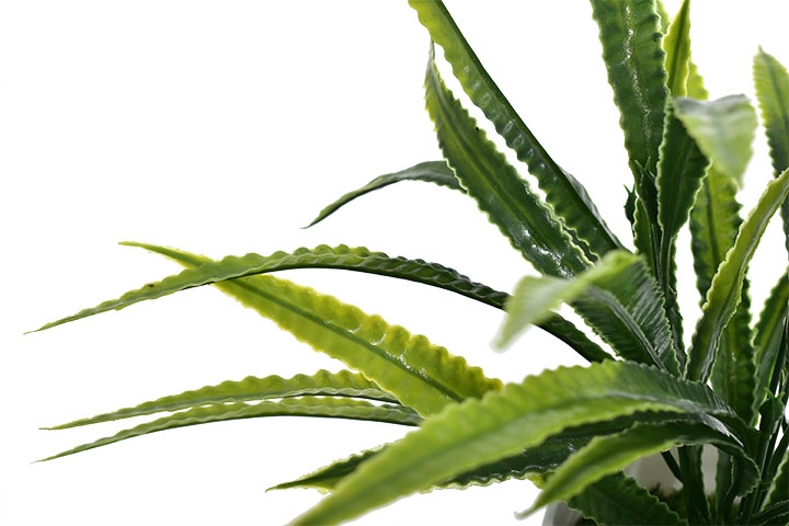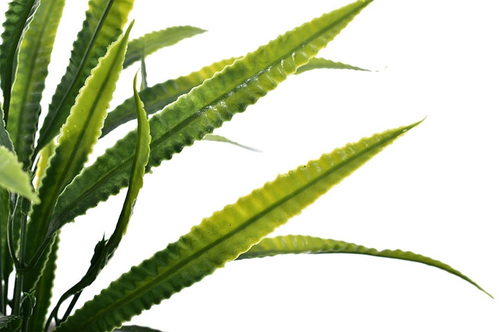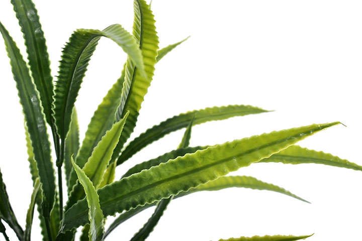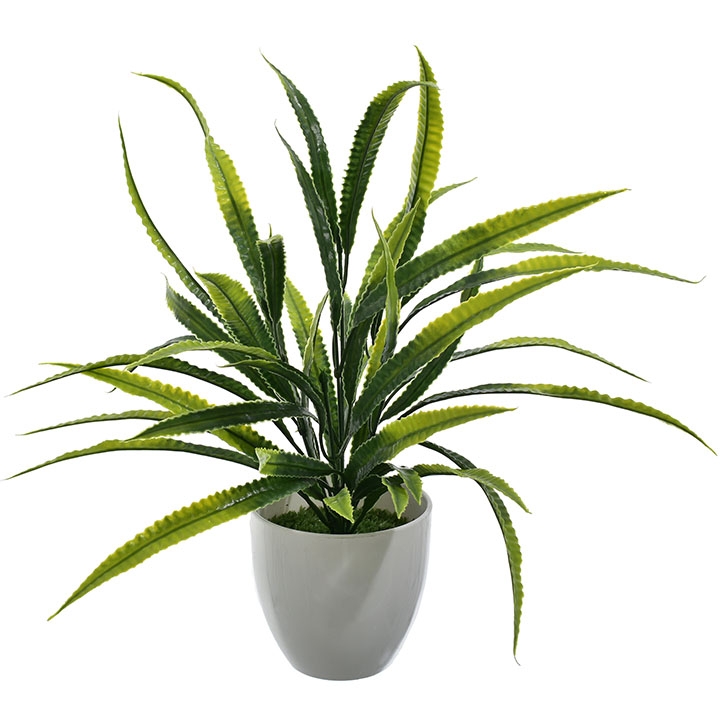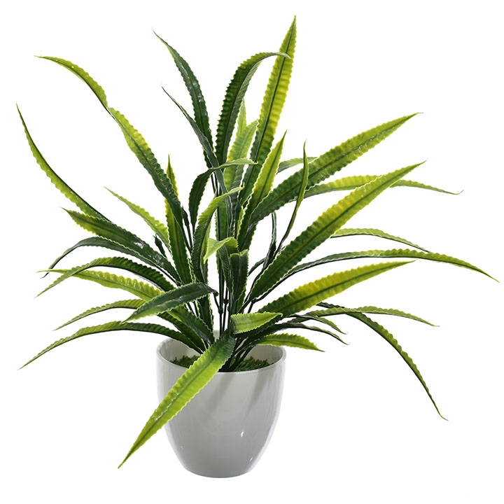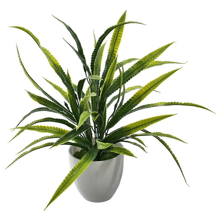 Nowoczesna sztuczna roślina z efektownymi, podłużnymi liśćmi w odcieniach zieleni to doskonała propozycja do dekoracji każdego wnętrza.
