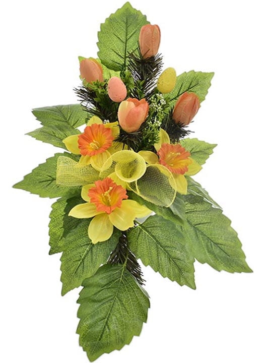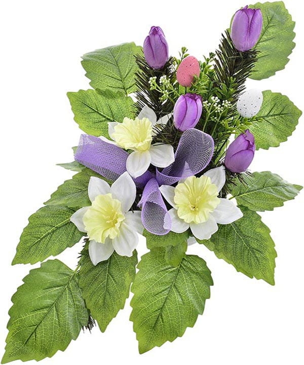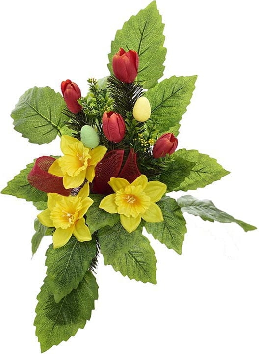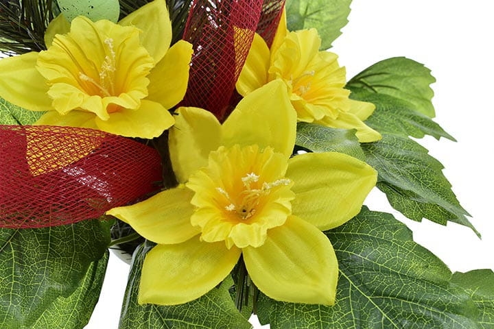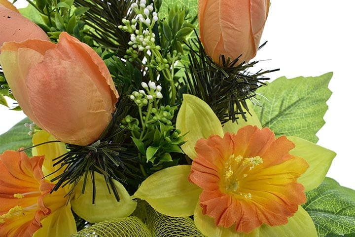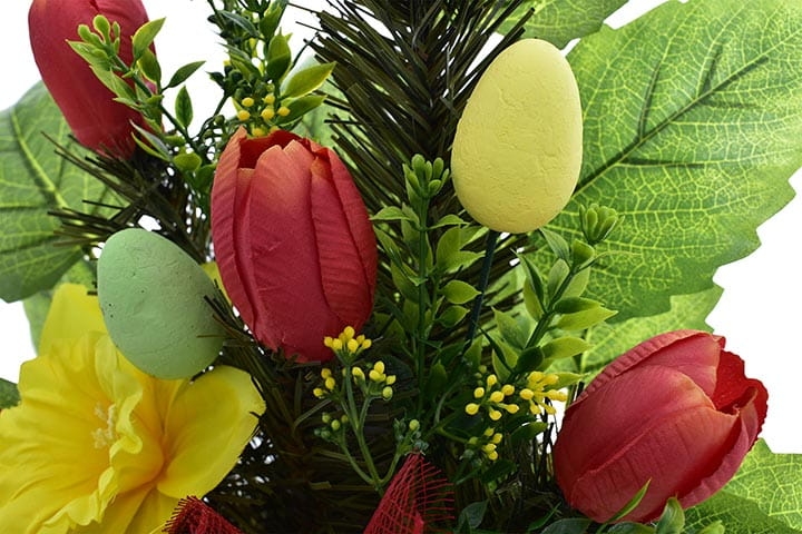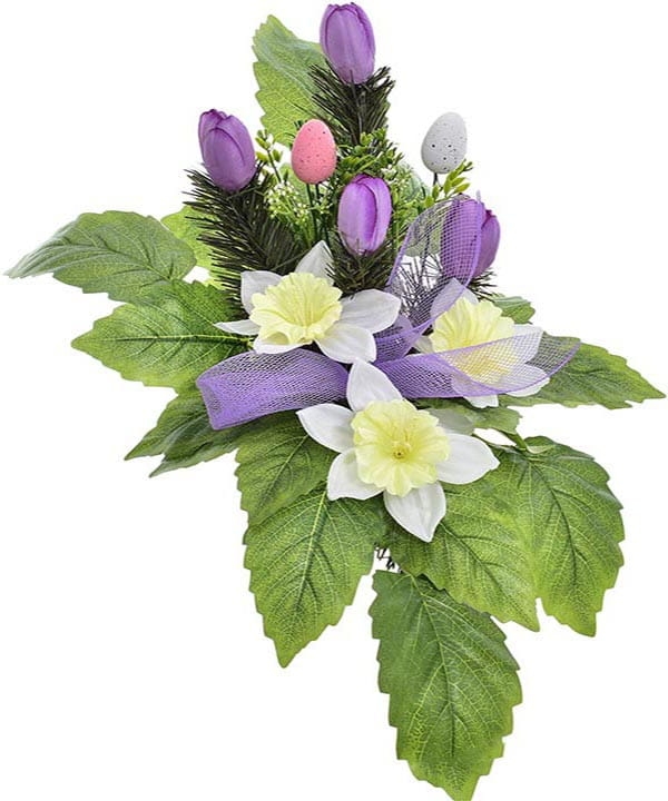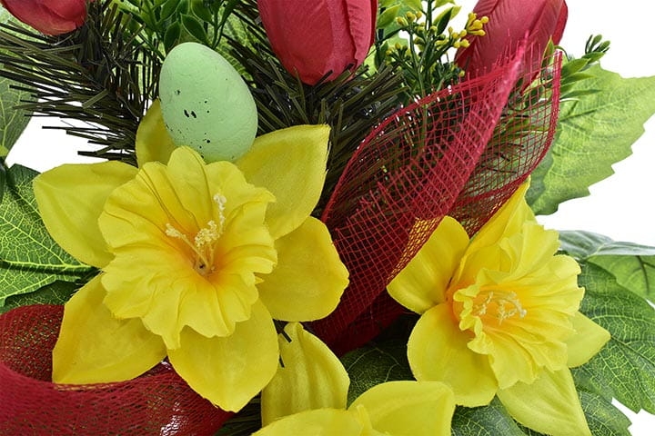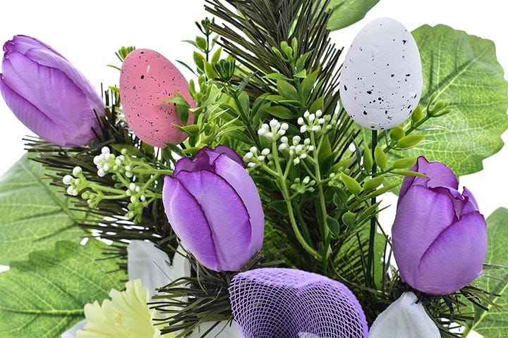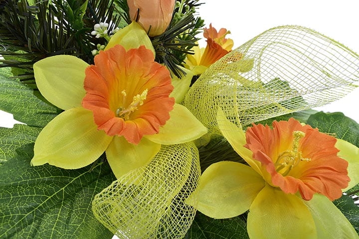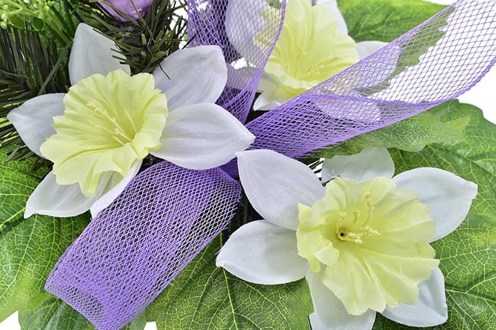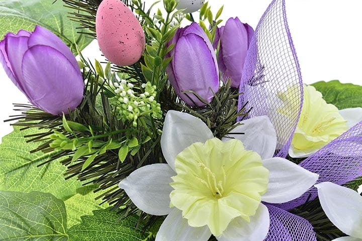 Całość wykonana z wysokiej jakości kwiatów sztucznych, co gwarantuje jej piękny wygląd przez długi okres czasu.