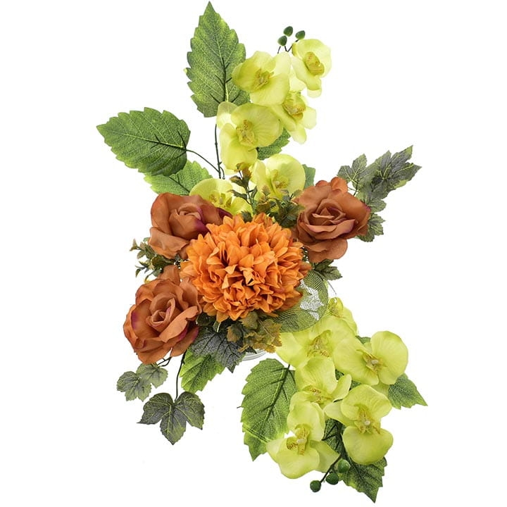 Misterne detale takie jak naturalne kolory liści, kwiaty różnej wielkości oraz zielone pączki sprawiają że nasza kompozycja jest wprost niesamowita.