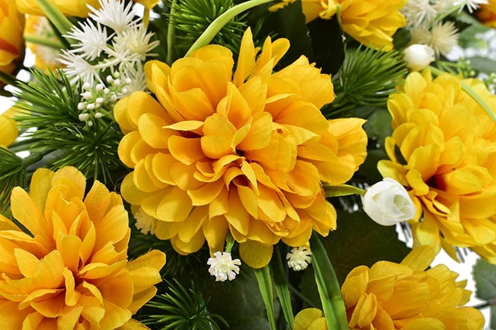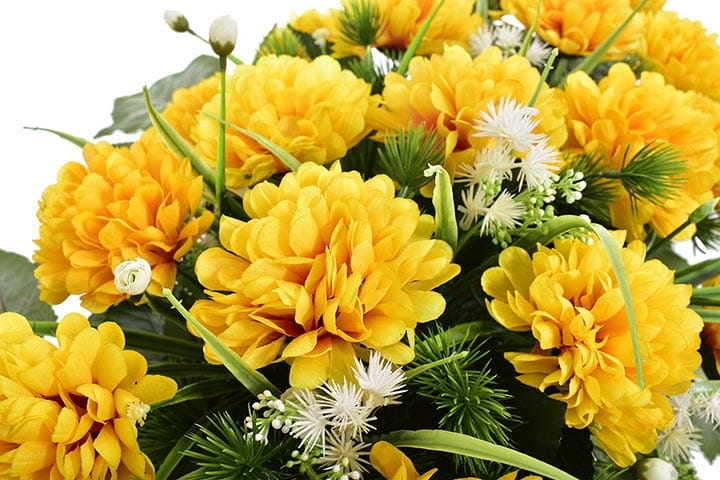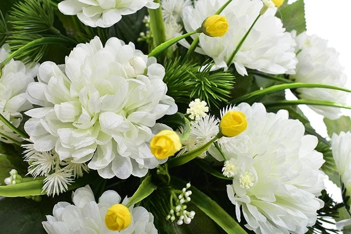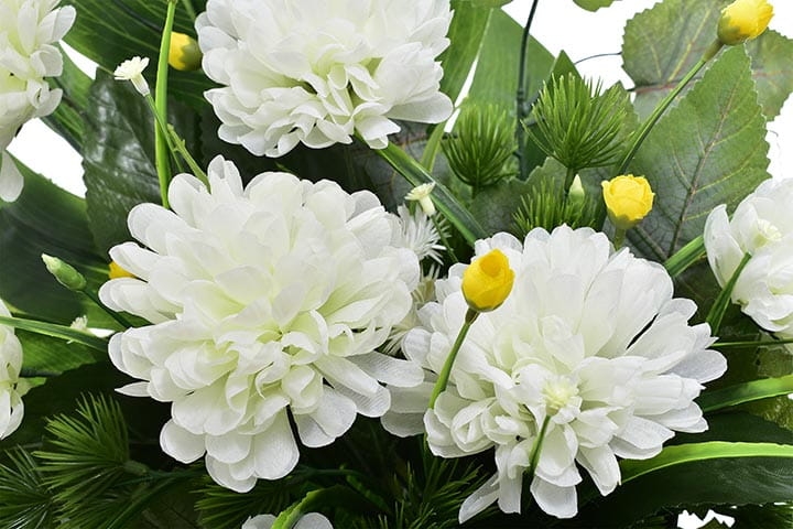 Uczcij pamięć swoich bliskich tą wspaniałą dekoracją, wykonaną z różnorodnych kwiatów, które będą promieniować pięknem przez długi czas.