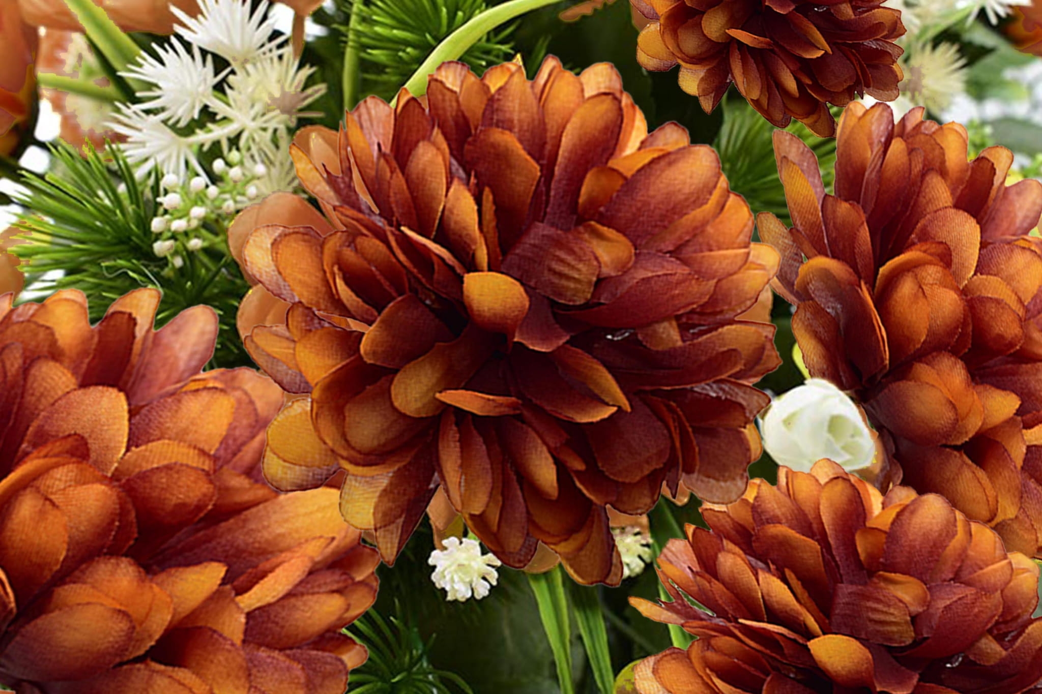 Przedstawiamy przepiękny bukiet wykonany z wysokiej jakości sztucznych kwiatów, które gwarantują trwałość na lata.