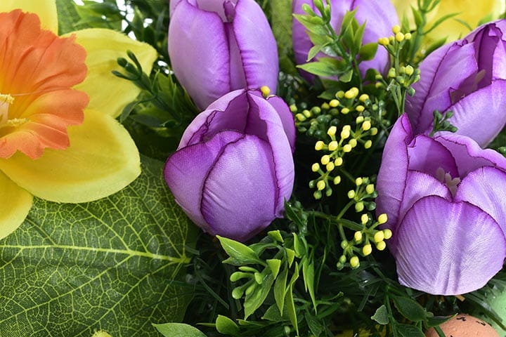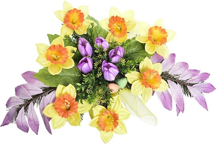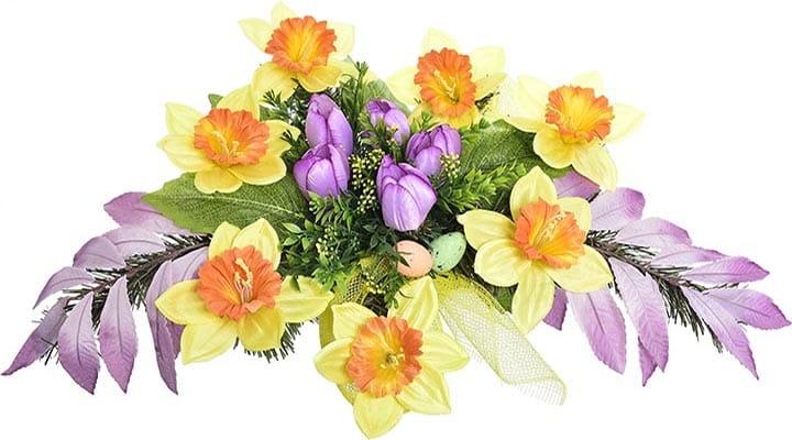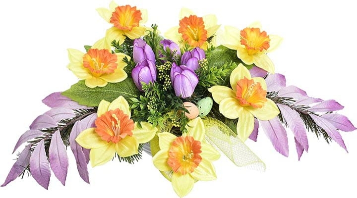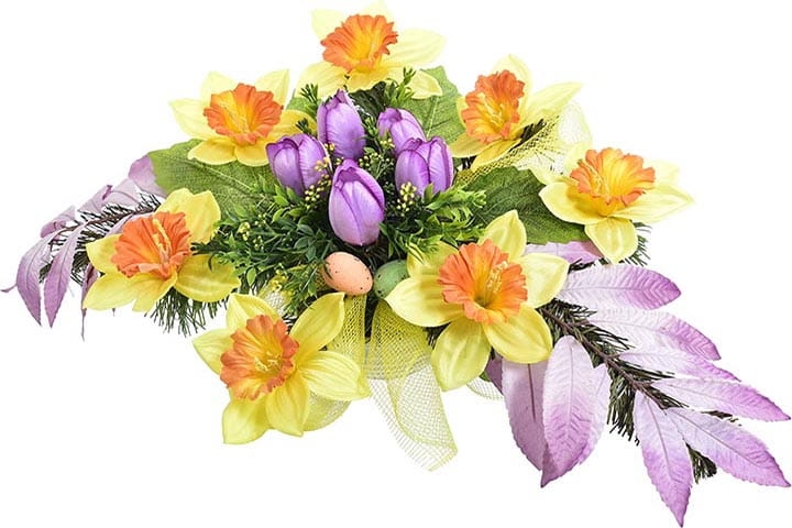 Wiązanka wykonana jest z najwyższej jakości kwiatów sztucznych w bogatej kolorystyce.