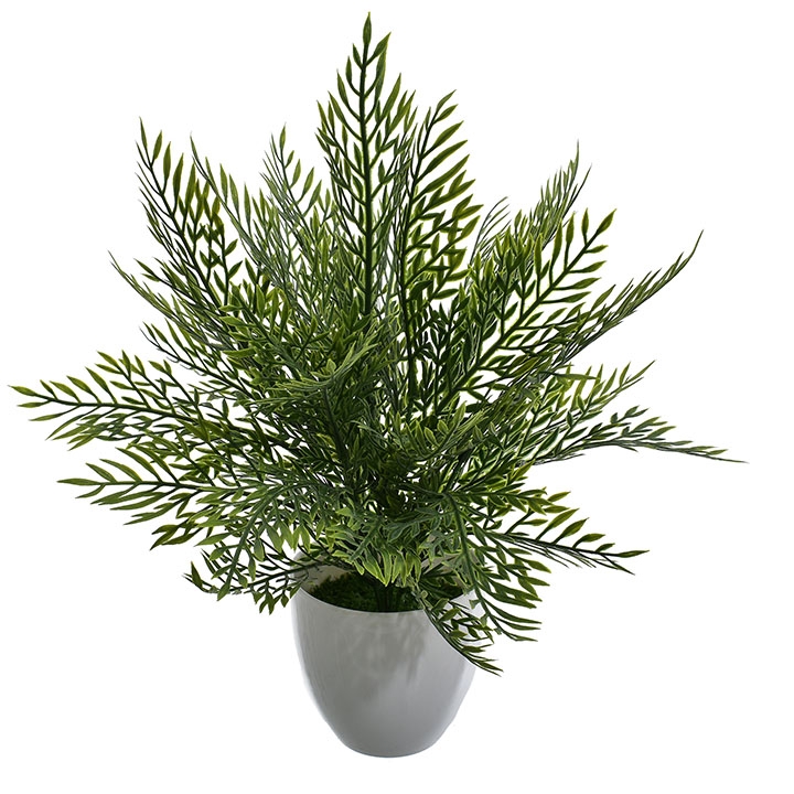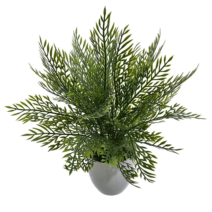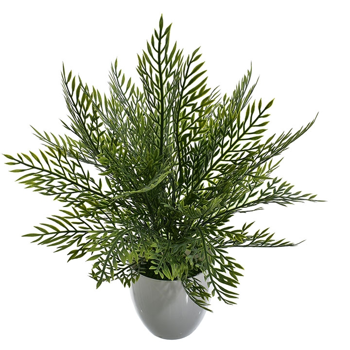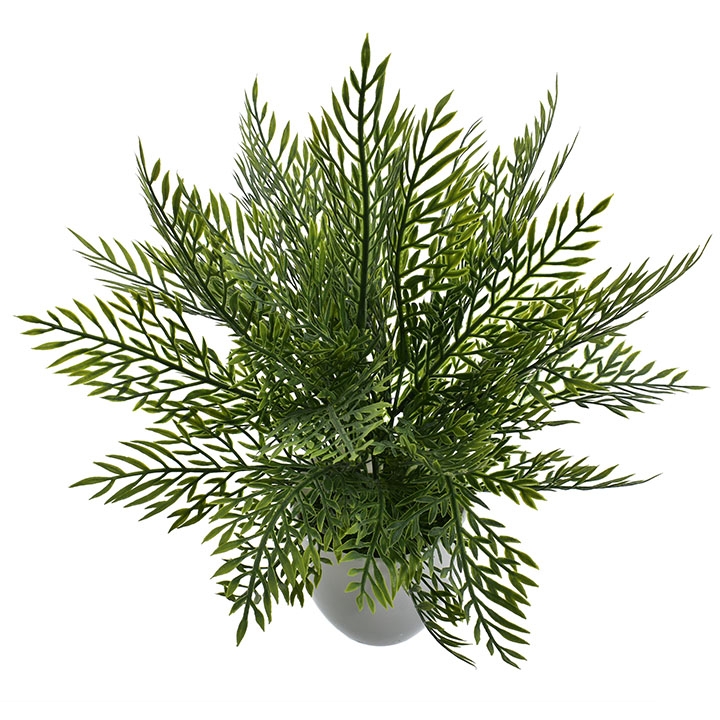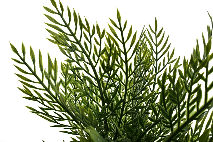 Ta dekoracyjna roślina o gęstych, igiełkowatych liściach w różnych odcieniach zieleni to nowoczesna ozdoba, która doskonale imituje egzotyczną roślinność.