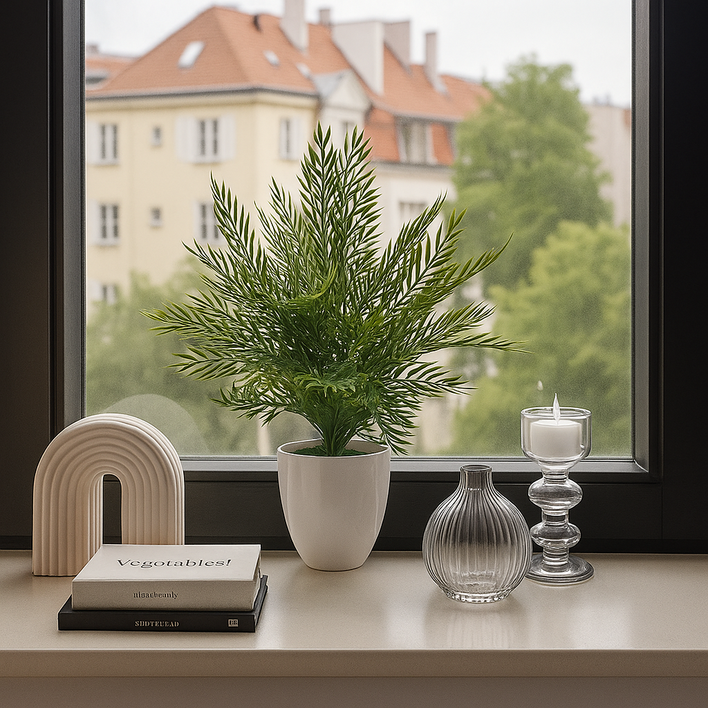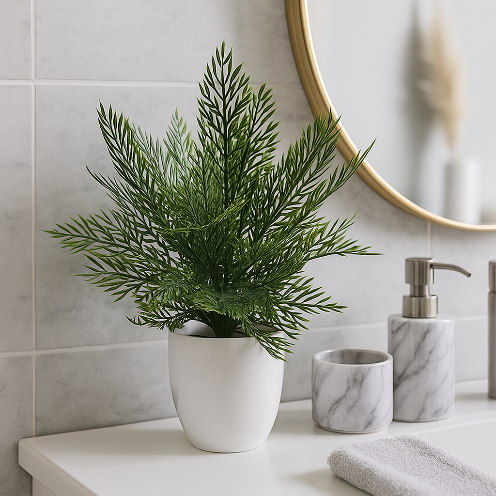 Sztuczna roślina z drobnymi, igiełkowatymi liśćmi – świeżość i elegancja bez pielęgnacji