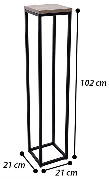 Nowoczesny stojak metalowy posiada podstawę na donicę z płyty MDF.