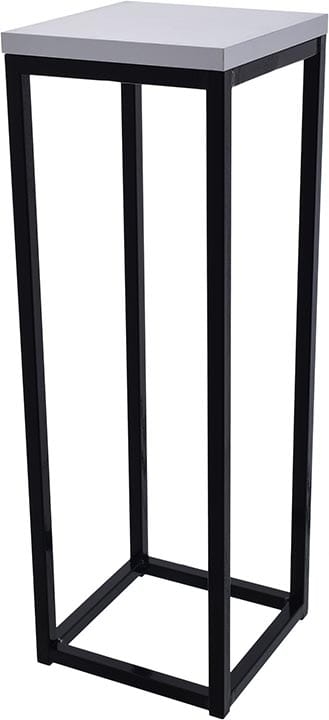 Nowoczesny stojak metalowy posiada podstawę na donicę z płyty MDF.