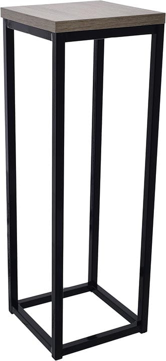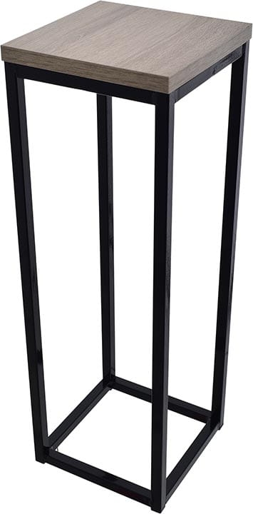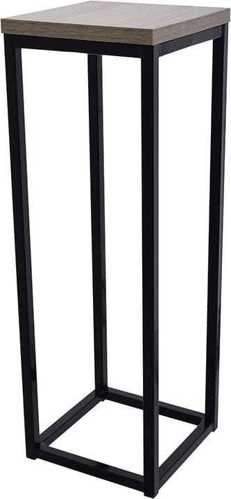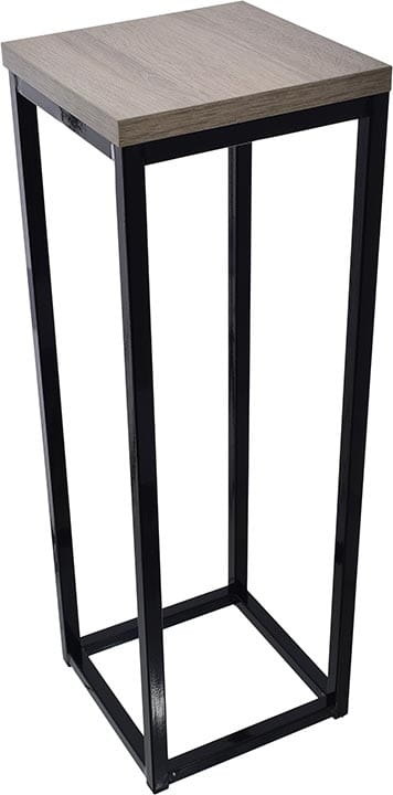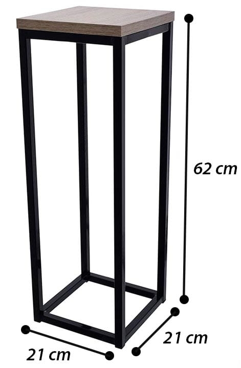 Nowoczesny stojak metalowy posiada podstawę na donicę z płyty MDF.