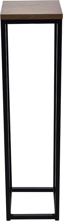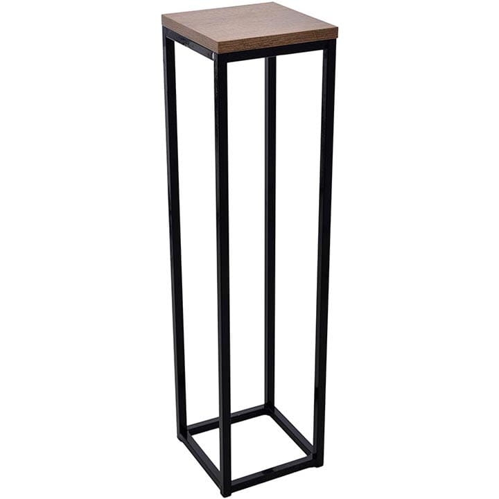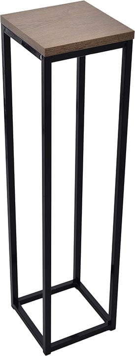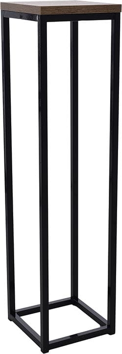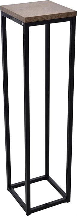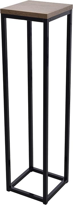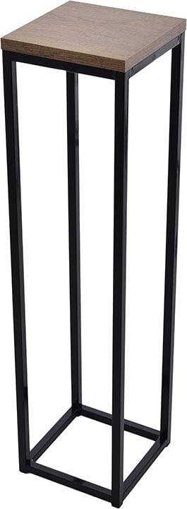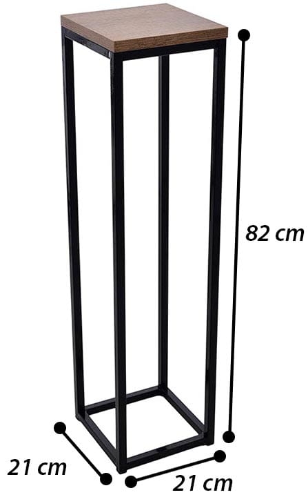 Nowoczesny stojak metalowy posiada podstawę na donicę z płyty MDF.
