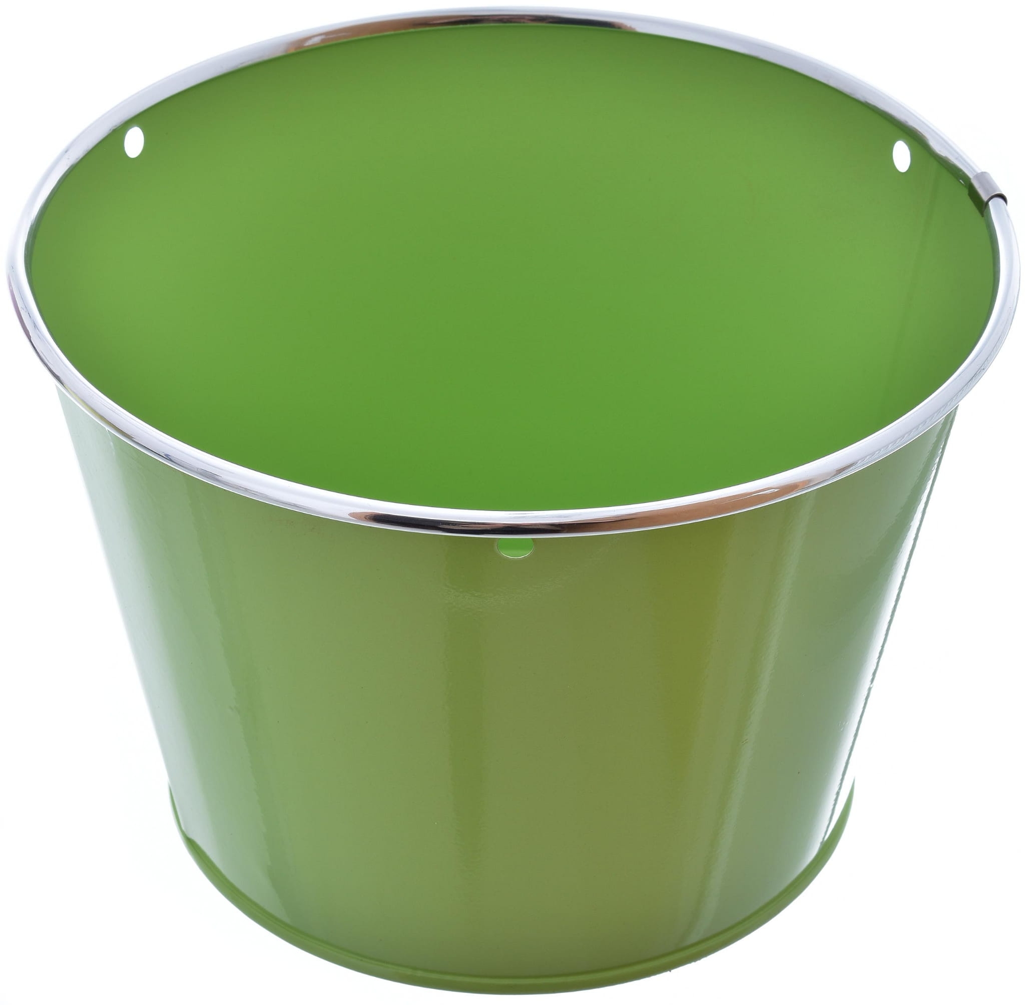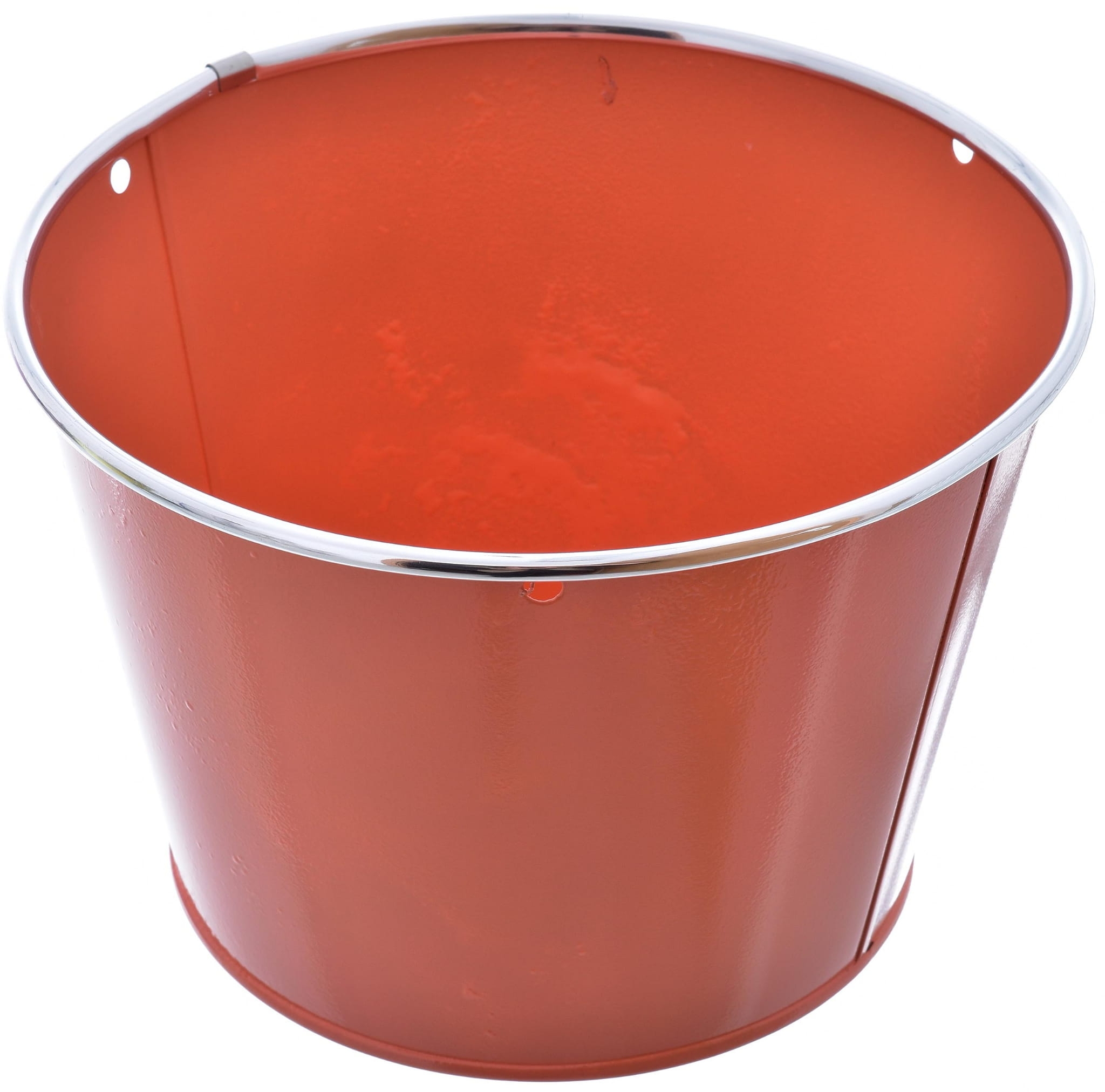 Duża osłonka metalowa, malowana, o okrągłym kształcie.