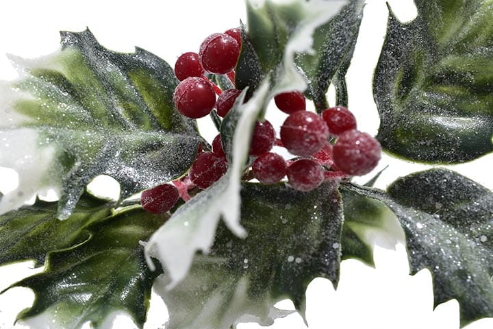 Całość dopełniają śliczne, czerwone owoce ostrokrzewu.