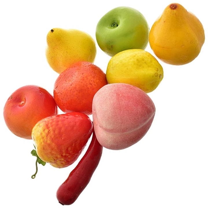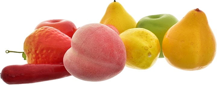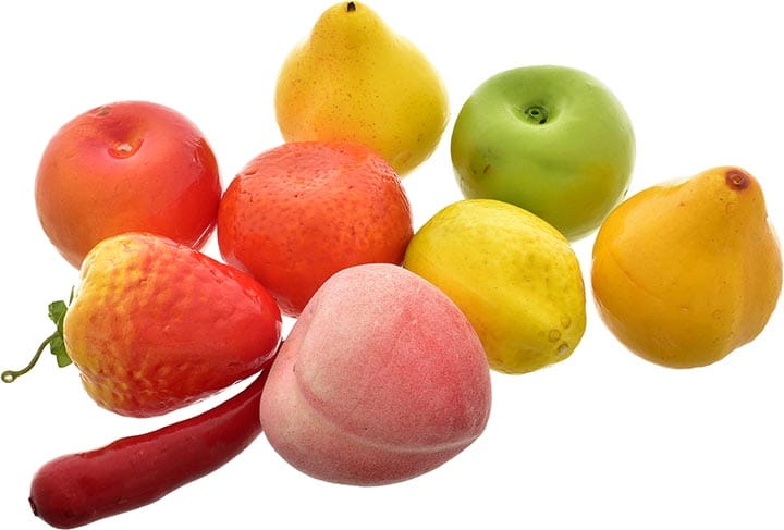 Owoce sztuczne wykonane z wysokiej jakości tworzywa sztucznego.