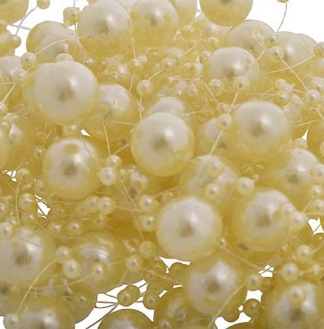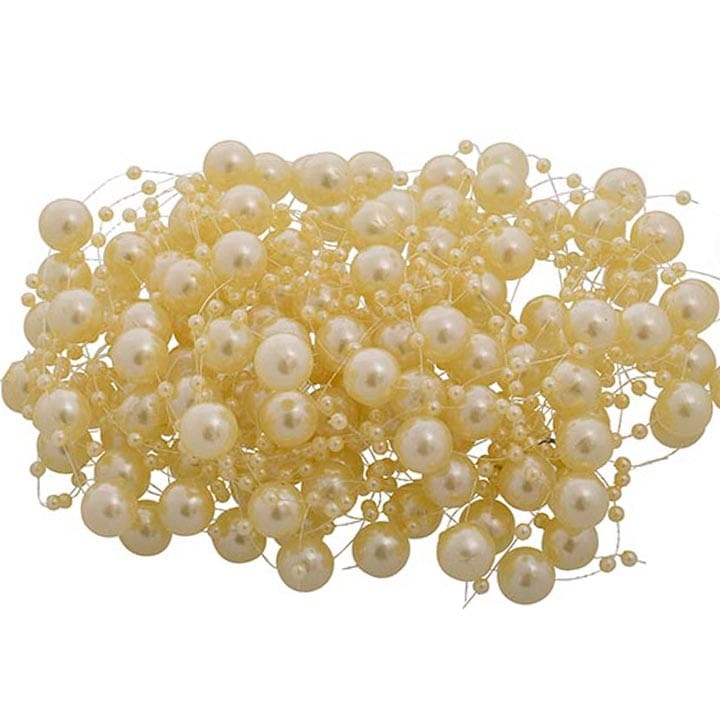 Delikatne perły w kolorze kremowym w dwóch rozmiarach są nawleczone na delikatnej żyłce, co czyni je pięknym dodatkiem do każdego wystroju.