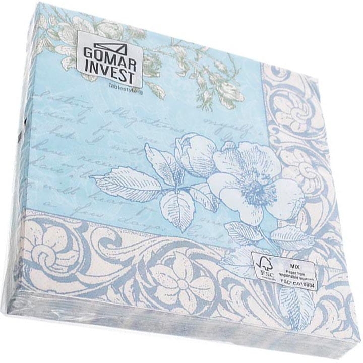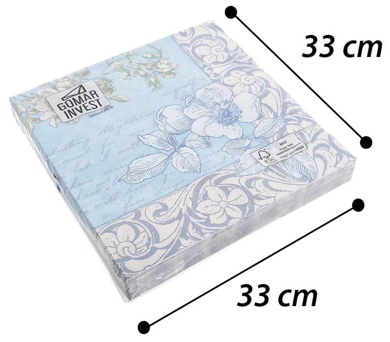Trójwarstwowe serwetki dekoracyjne ozdobione kwiatowym motywem.
