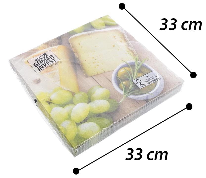 Trójwarstwowe serwetki dekoracyjne ozdobione motywem winogrona i sera.