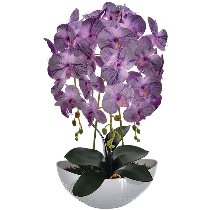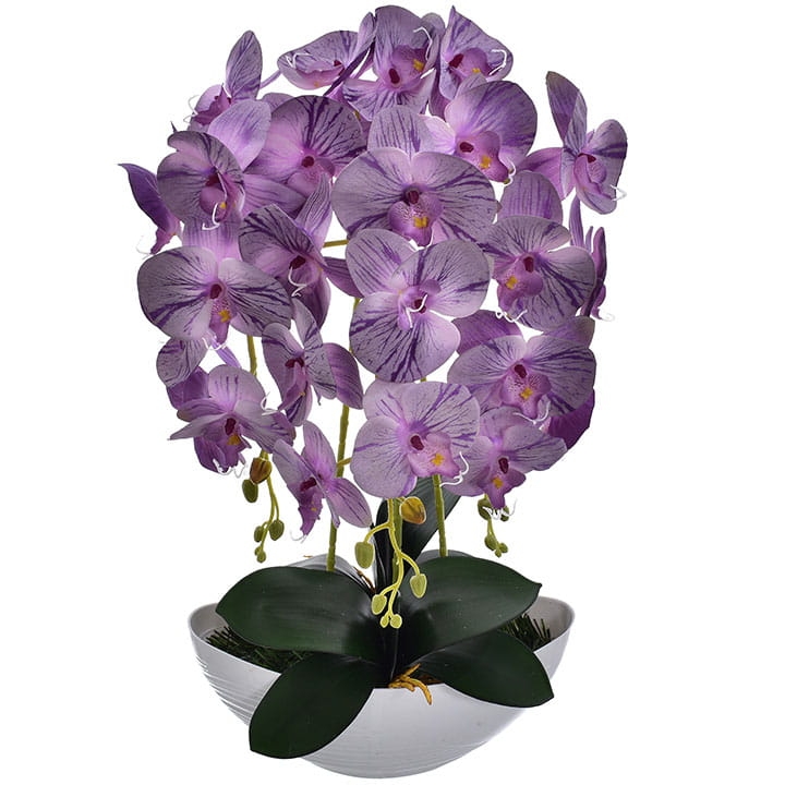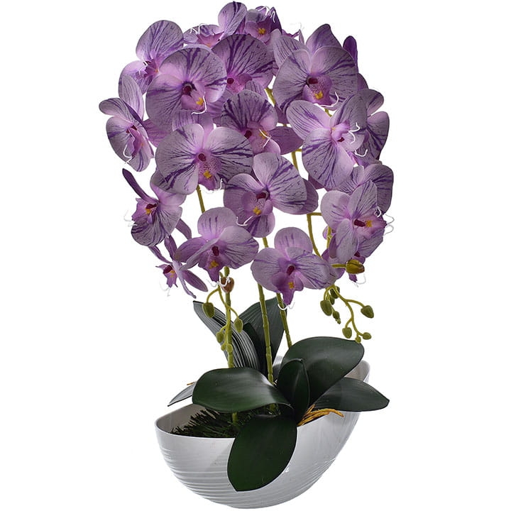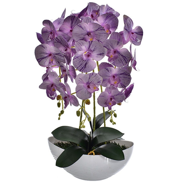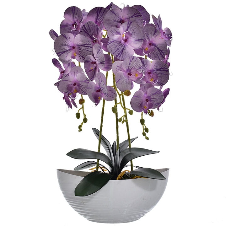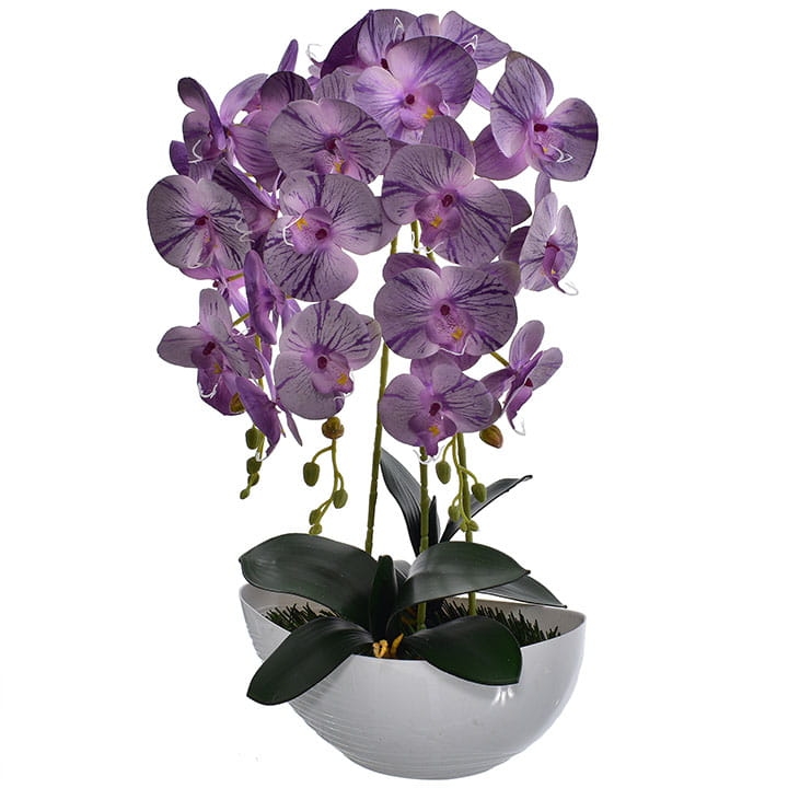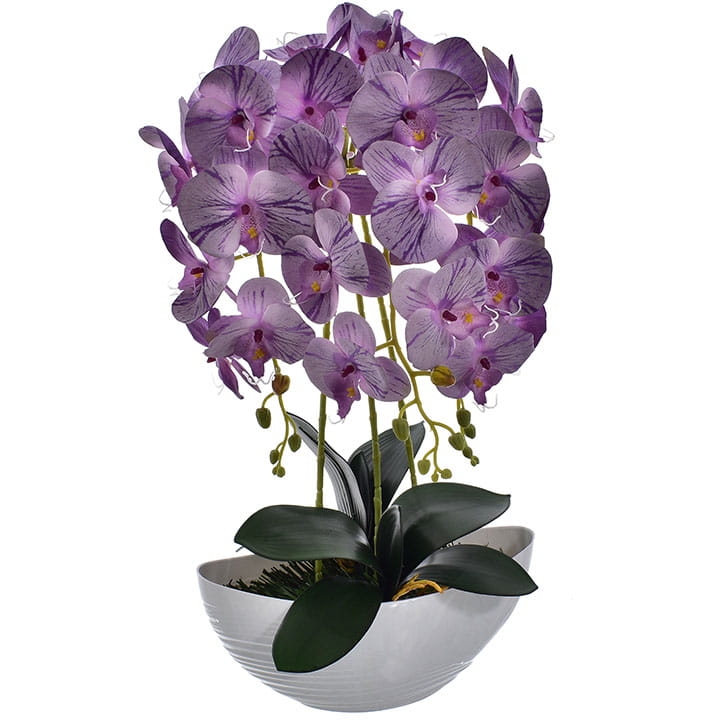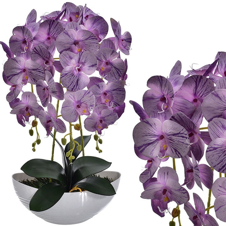 Kompozycja doskonale imituje piękno żywych storczyków i stanowi idealny element wystroju wnętrz.
