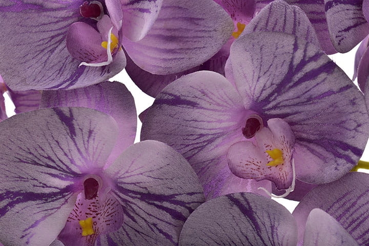 Trzy pędy storczyka z bardzo dużą ilością silikonowych kwiatów, które do złudzenia przypominają żywe.