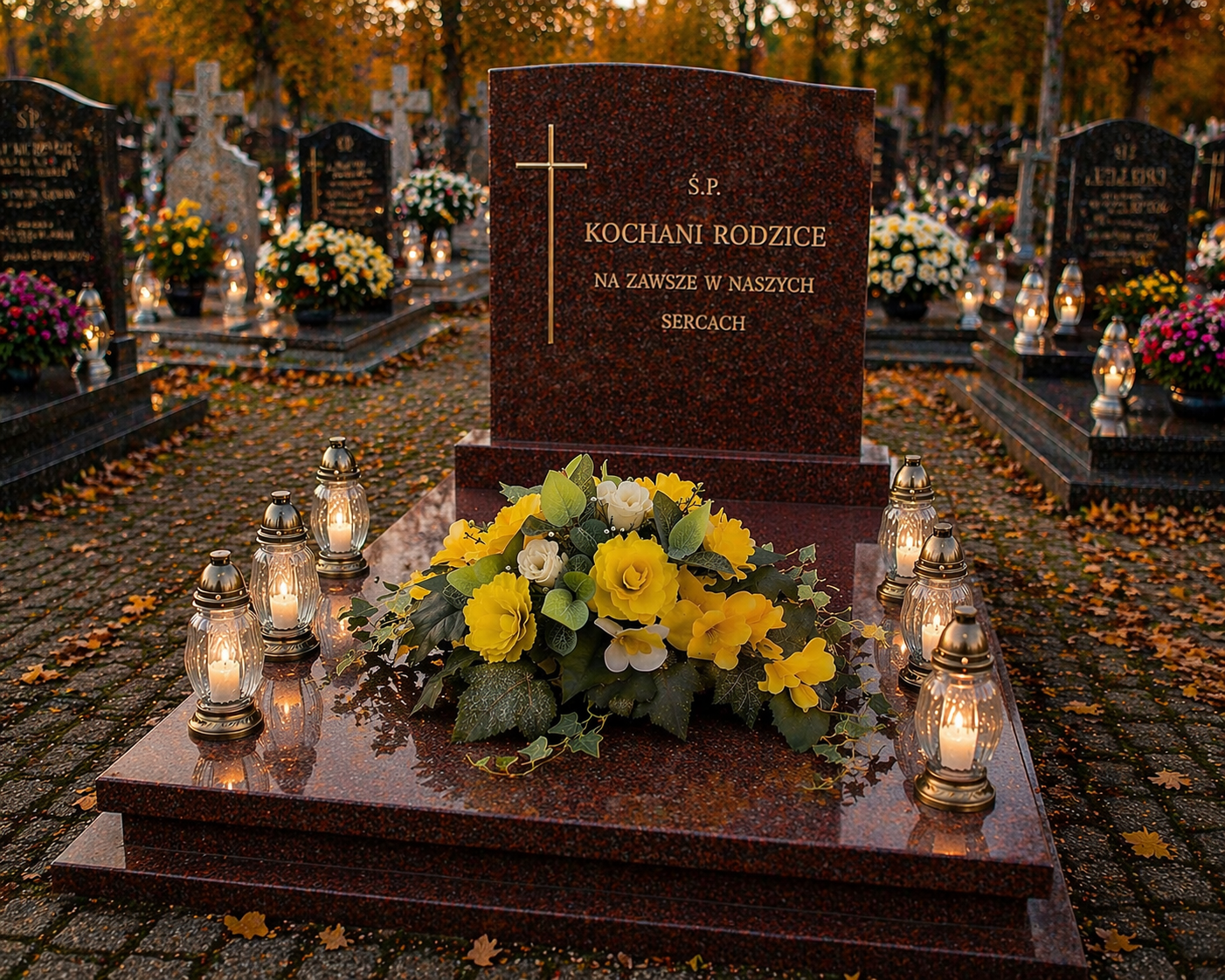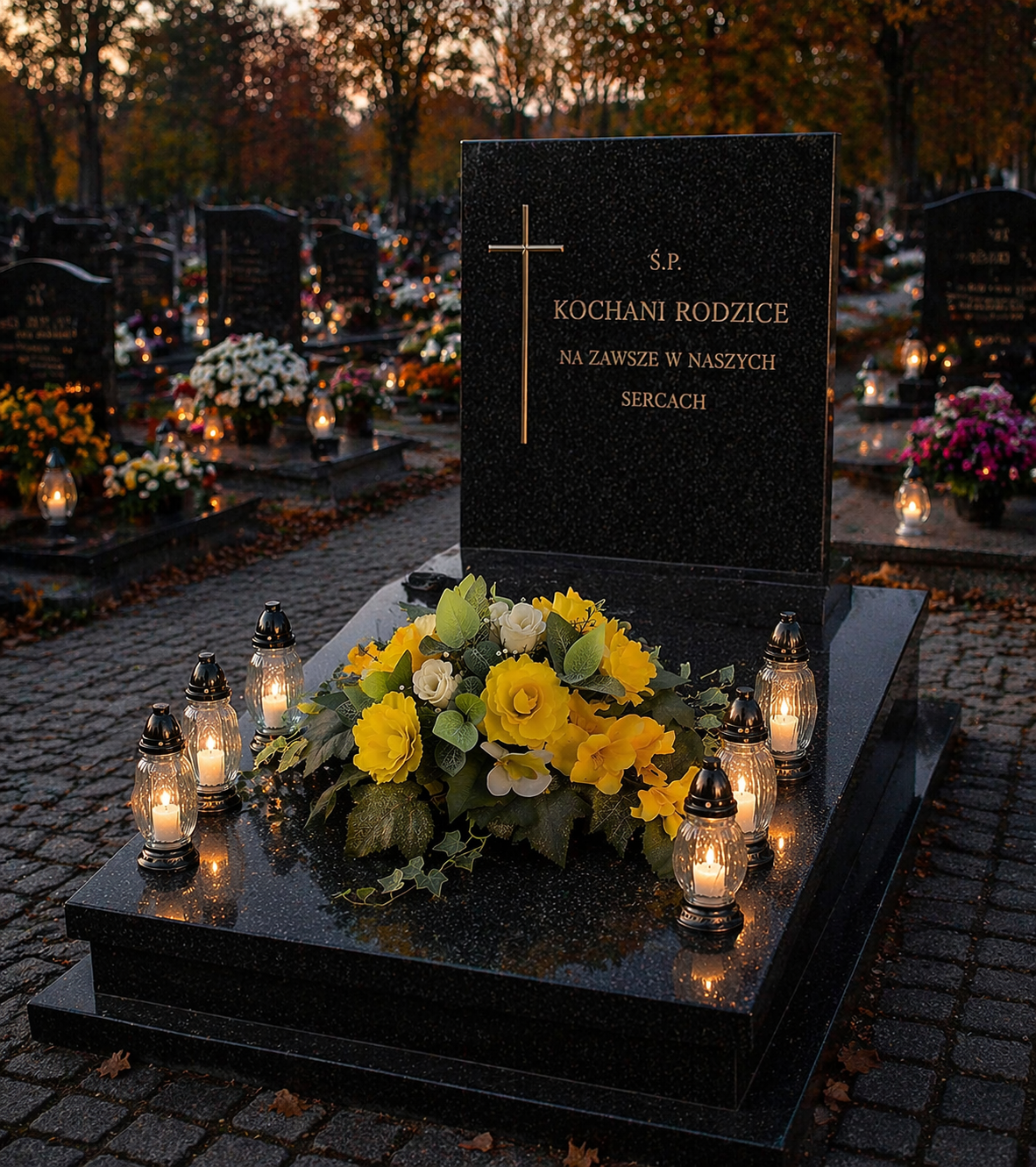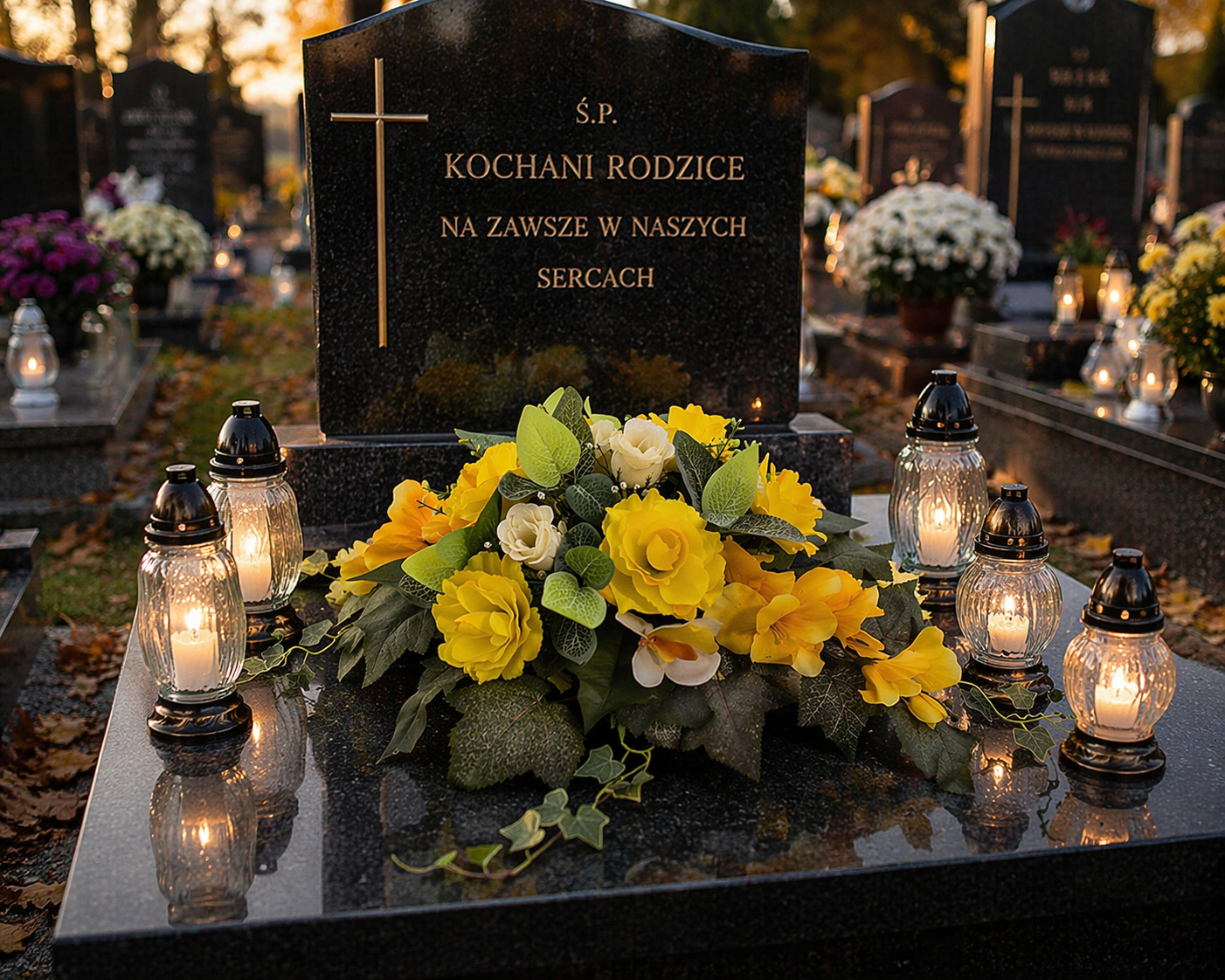 Dekoracja przeznaczona na Wszystkich Świętych, rocznice, urodziny i inne ważne okazje, by uczcić pamięć zmarłych w sposób pełen godności i piękna.