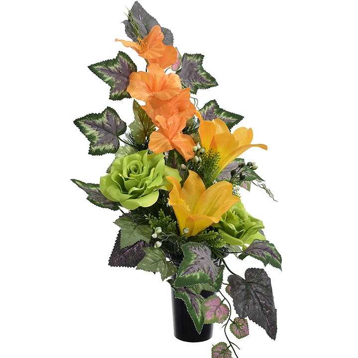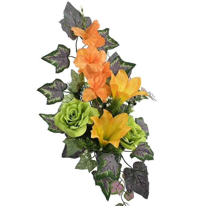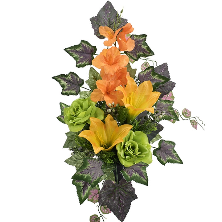 STROIK NA GRÓB WKŁAD DO WAZONU BUKIET NAGROBNY Z LILIAMI I RÓŻAMI - 60 CM
