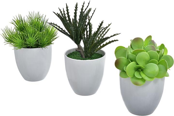 Sztuczne kwiaty idealnie nadają się do dekoracji ciemnych pomieszczeń np. łazienki, korytarza, ciemnej kuchni.