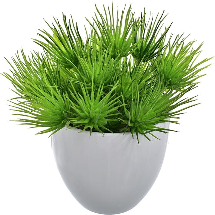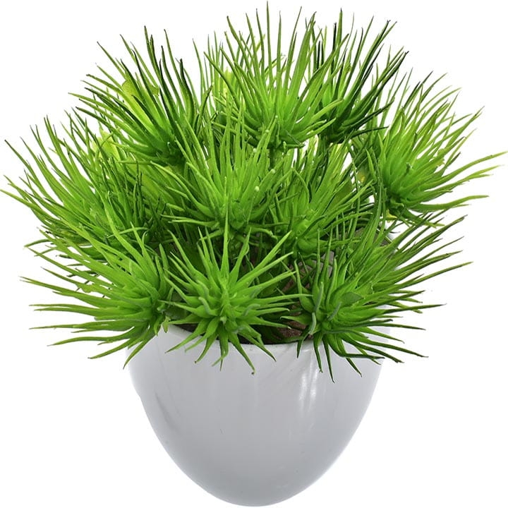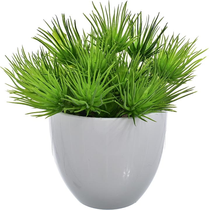 Elegancka, sztuczna roślina w białej doniczce to stylowa ozdoba każdego pomieszczenia.