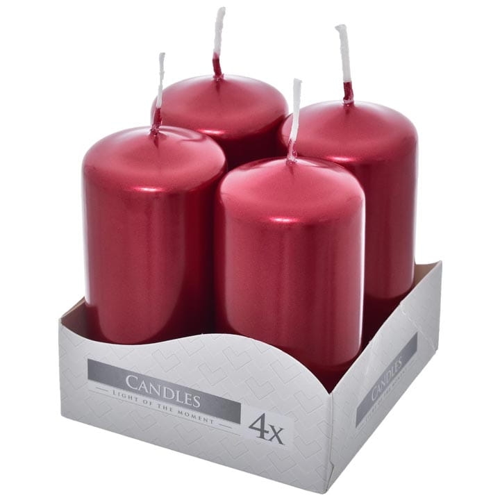 Te klasyczne świece w kolorze czerwony metalik pakowane w blister po 4 sztuki w przyjemny sposób rozświetlą każde wnętrze.